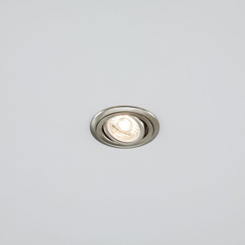 Schwenkbare Deckeneinbauleuchte für vielfältige Anwendungen im Innenbereich. Abhängig von der verwendeten Fassung lassen sich verschiedene Leuchtmittel für die Unterschiedlichsten Beleuchtungsanforderungen in die Leuchte einsetzen, ganz egal ob Halogen oder LED, wodurch der Gestaltungsmöglichkeit nahezu keine Grenzen gesetzt sind. Der Schwenkwinkel der Leuchte beträgt 30°. Die Farbe entspricht Chrom satiniert.