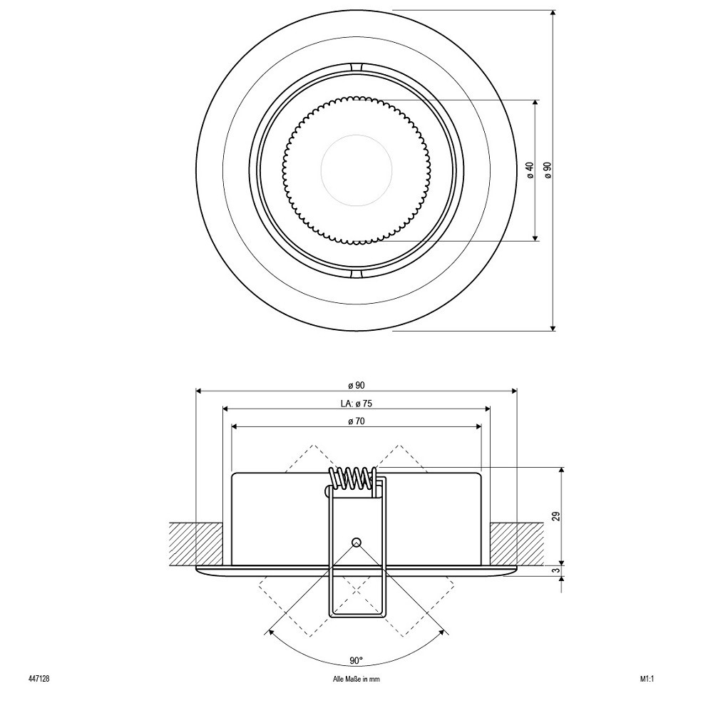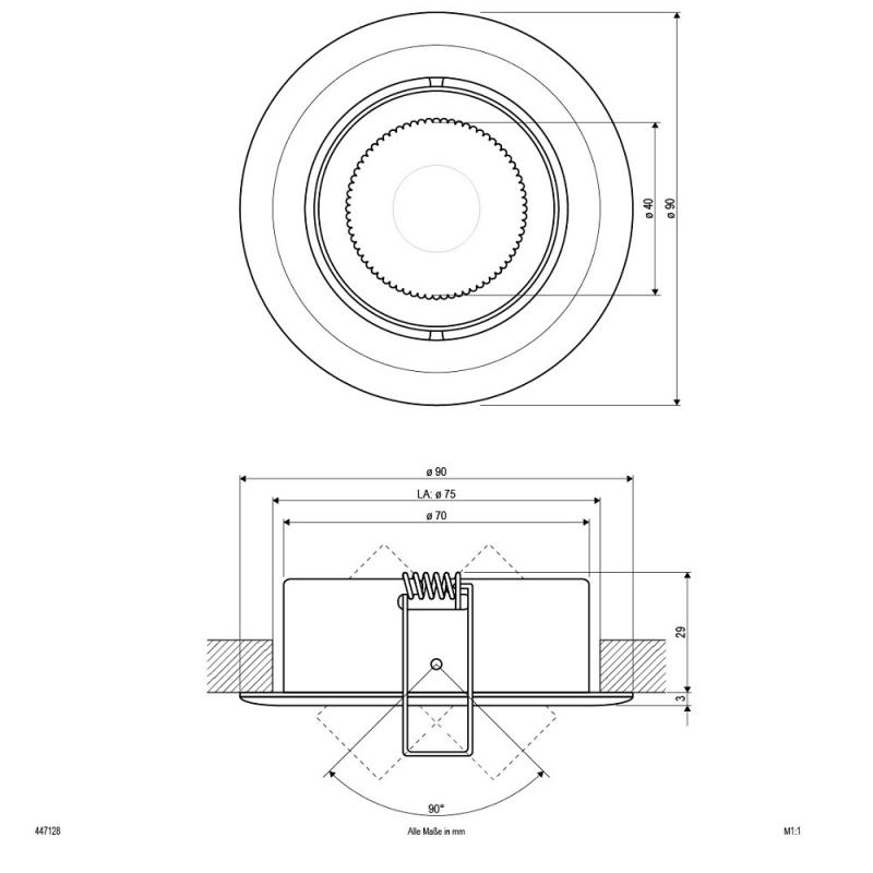 Schwenkbare Deckeneinbauleuchte für vielfältige Anwendungen im Innenbereich. Durch die Niedervoltfassung lassen sich verschiedene Leuchtmittel für die Unterschiedlichsten Beleuchtungsanforderungen in die Leuchte einsetzen, ganz egal ob Halogen oder LED, wodurch der Gestaltungsmöglichkeit nahezu keine Grenzen gesetzt sind. Es können mehrere Leuchten über ein Betriebsgerät betrieben werden, wodurch sich verschiedene Lichtgruppen innerhalb eines Raums schalten lassen. Die Glasabdeckung ist in der Mitte mattiert. Der Schwenkwinkel der Leuchte beträgt 45°.