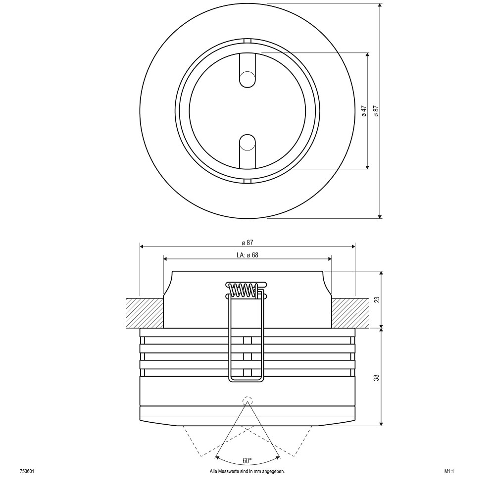 "Einbau in isolierte Decken, Brandschutz ""F mit Dach""": nein
