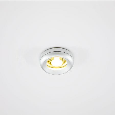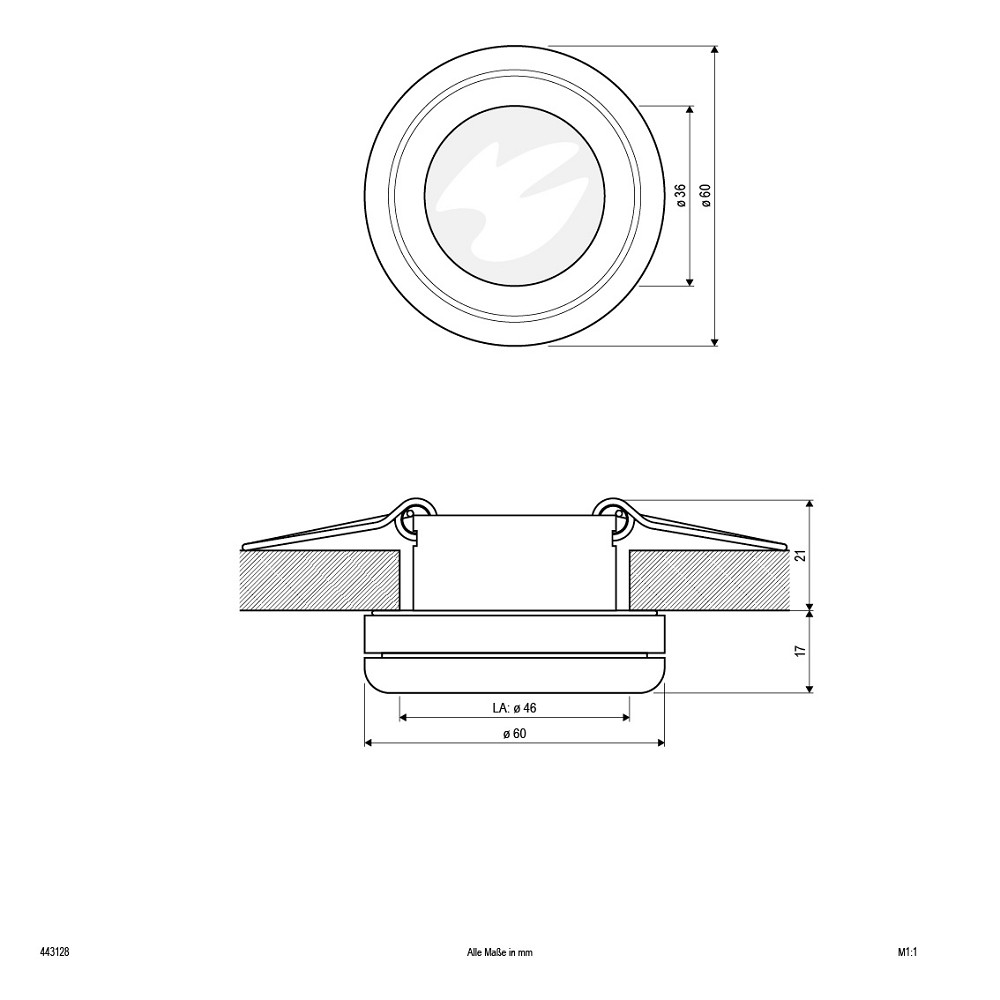 Deckeneinbauleuchte für vielfältige Anwendungen im Innenbereich. Sowohl Effektbeleuchtungen, Raumbeleuchtung, Akzentuierte Beleuchtung und vieles mehr, lassen sich mit dieser Leuchte umsetzten. Durch die Niedervoltfassung lassen sich verschiedene Leuchtmittel für die Unterschiedlichsten Beleuchtungsanforderungen in die Leuchte einsetzen, ganz egal ob Halogen oder LED, wodurch der Gestaltungsmöglichkeit nahezu keine Grenzen gesetzt sind. Es können mehrere Leuchten über ein Betriebsgerät betrieben werden, wodurch sich verschiedene Lichtgruppen innerhalb eines Raums schalten lassen. Um einem eventuellem Blendeffekt vorzubeugen, ist das Glas mittig, mit einem Durchmesser von 20mm, satiniert.