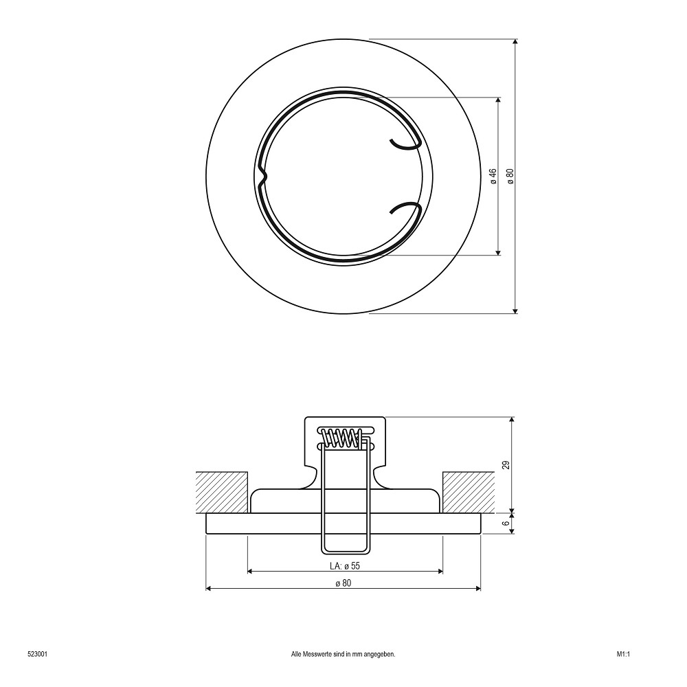 Deckeneinbauleuchte für vielfältige Anwendungen im Innenbereich. Sowohl Effektbeleuchtungen, Raumbeleuchtung, Akzentuierte Beleuchtung und vieles mehr, lassen sich mit dieser Leuchte umsetzten. Durch die Hochvoltfassung lassen sich verschiedene Leuchtmittel für die Unterschiedlichsten Beleuchtungsanforderungen in die Leuchte einsetzen, wodurch der Gestaltungsmöglichkeit nahezu keine Grenzen gesetzt sind. Da die Leuchte direkt an die 230V-Zuleitung angeschlossen werden kann, entfallen zusätzliche Kosten für Betriebsgeräte. Lieferung erfolgt inkl. Distanzbügel.