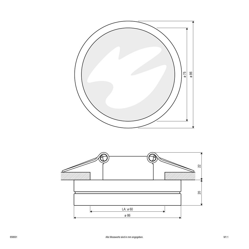 Halbeinbau-Deckenleuchte für vielfältige Anwendungen im Innenbereich. Sowohl Effektbeleuchtungen, Raumbeleuchtung, Akzentuierte Beleuchtung und vieles mehr, lassen sich mit dieser Leuchte umsetzten. Abhängig von der verwendeten Fassung lassen sich verschiedene Leuchtmittel für die Unterschiedlichsten Beleuchtungsanforderungen in die Leuchte einsetzen, ganz egal ob Halogen oder LED, wodurch der Gestaltungsmöglichkeit nahezu keine Grenzen gesetzt sind. Beim Einbau in geschlossene Decken wird die Schutzart IP65 erreicht. Es dürfen keine Halogen-Leuchtmittel mit Alureflektor in der Leuchte betrieben werden. Die Aufbauhöhe beträgt 20mm.