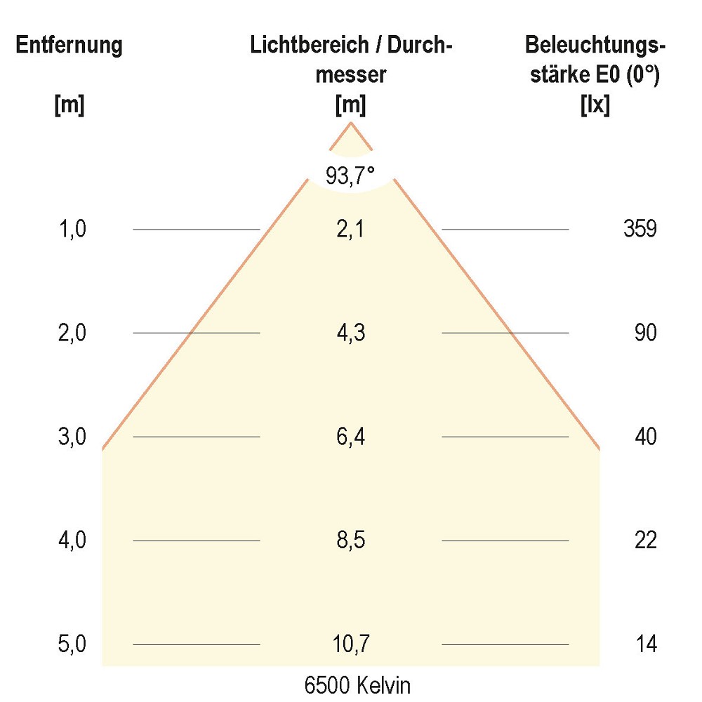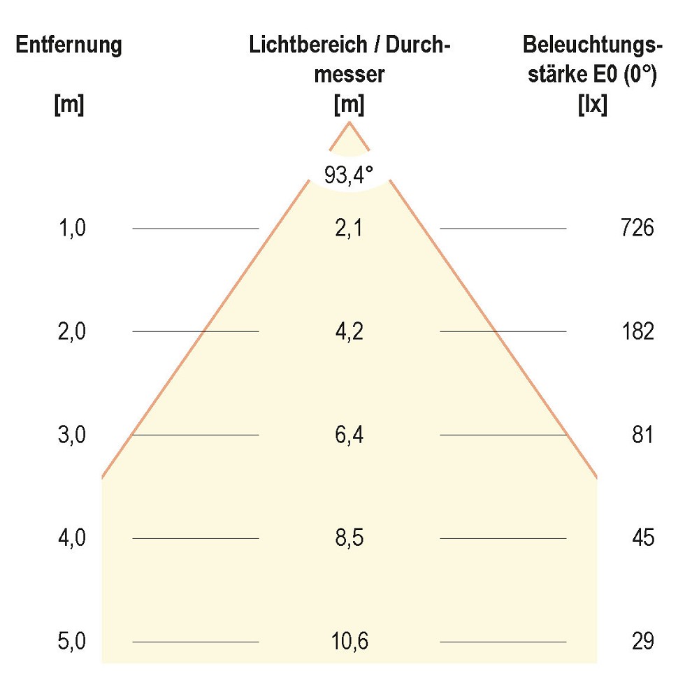 Ausstrahlungswinkel: extrem breitstrahlend >80°