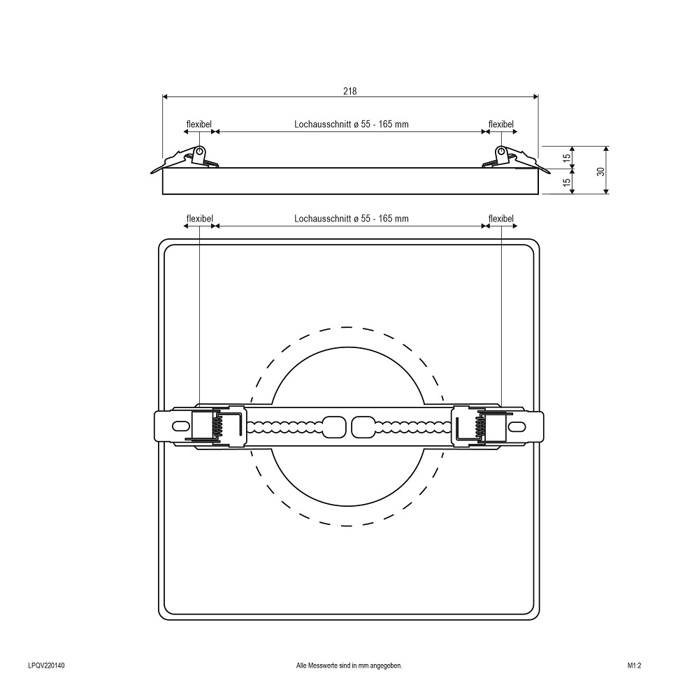 LED Ein- und Anbaupanel für verschiedene Anwendungsbereiche, wie z. B. flächendeckende, aber auch effektvolle Beleuchtungen in Flur, Wohnzimmer, Büro, und vieles mehr. Das Panel ist ausschließlich zur Verwendung im Innenbereich geeignet. Die Haltefedern können durch verschieden Rasterpunkte auf der Halteschiene verstellt werden, wobei folgende Ausschnittmaße möglich sind: 55mm, 65mm, 75mm, 90mm, 102mm, 115mm, 126mm, 140mm, 154mm, 165mm. Durch den großflächigen Lichtaustritt wird dabei immer eine sehr homogene Ausleuchtung des Raumes erreicht. Das Netzgerät ist im Panel verbaut.