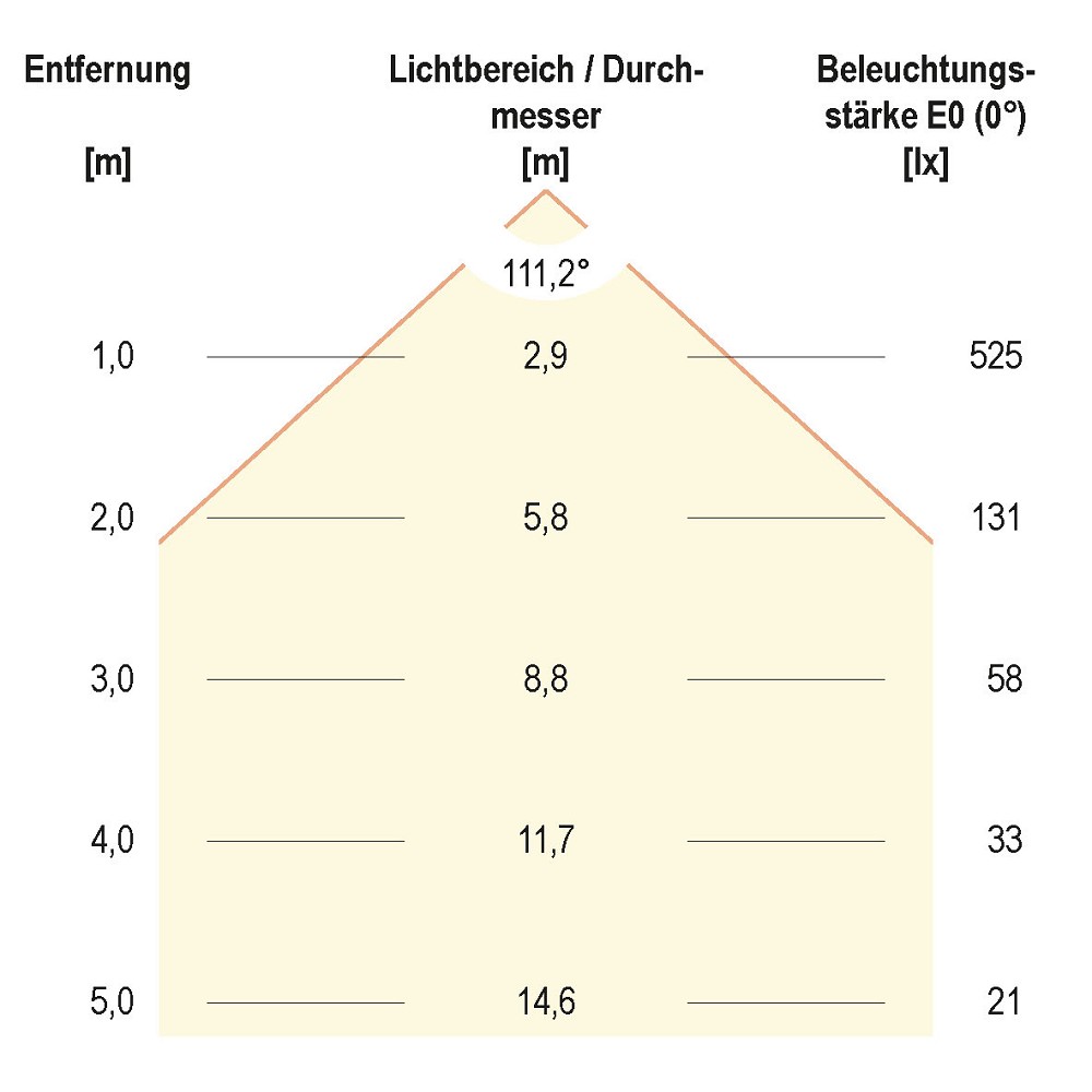 Ausstrahlungswinkel: extrem breitstrahlend >80°