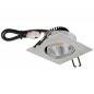 Mit der COB-LED Deckeneinbauleuchte lassen sich vielfältige Anwendungen im Innenbereich, wie z. B. Effektbeleuchtung, Raumbeleuchtung, Akzentuierte Beleuchtung und vieles mehr realisieren. Da außerdem die MM-Kennzeichnung gegeben ist, lässt sich diese sogar im Möbelbau verwenden. Zusätzliche Kosten für Leuchtmittel entfallen bei dieser Leuchte, da die Leistung von einem fest verbauten LED-Chip geliefert wird. Dank der Konstantstromversorgung lassen sich auch mehrere Leuchten über ein Netzgerät betreiben, wobei hierbei der optional erhältliche 6-fach-AMP-Verteiler (P-LEDAMP006) verwendet werden kann. Die 30cm lange Anschlussleitung ist mit einem AMP-Stecker versehen. Die Dimmart ist abhängig vom jeweils verwendetem Netzgerät. Sofern jede Leuchte mit einem eigenen Netzgerät betrieben werden soll, wäre die perfekte Ergänzung das PLD109, welches zum einen einfach über den AMP-Stecker mit der Leuchte verbunden werden kann und außerdem sowohl über Phasenan- und Phasenabschnitt dimmbar ist. Der Schwenkwinkel beträgt 20°.