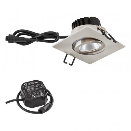 Mit der COB-LED Deckeneinbauleuchte lassen sich vielfältige Anwendungen im Innenbereich, wie z. B. Effektbeleuchtung, Raumbeleuchtung, Akzentuierte Beleuchtung und vieles mehr realisieren. Beim Einbau in geschlossene Decken erreicht die Leuchte die Schutzart IP65. Aufgrund dessen kann die Leuchte natürlich ebenso für Feuchtraum-Anwendungen und im Außenbereich eingesetzt werden. Zusätzliche Kosten für Leuchtmittel entfallen bei dieser Leuchte, da die Leistung von einem fest verbauten LED-Chip geliefert wird. Da im Lieferumfang das Netzgerät bereits enthalten ist, fallen auch hierfür keine zusätzlichen Kosten an. Der Schwenkwinkel beträgt 20°. tc: 75°C.