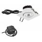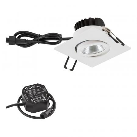 Mit der COB-LED Deckeneinbauleuchte lassen sich vielfältige Anwendungen im Innenbereich, wie z. B. Effektbeleuchtung, Raumbeleuchtung, Akzentuierte Beleuchtung und vieles mehr realisieren. Beim Einbau in geschlossene Decken erreicht die Leuchte die Schutzart IP65. Aufgrund dessen kann die Leuchte natürlich ebenso für Feuchtraum-Anwendungen und im Außenbereich eingesetzt werden. Zusätzliche Kosten für Leuchtmittel entfallen bei dieser Leuchte, da die Leistung von einem fest verbauten LED-Chip geliefert wird. Da im Lieferumfang das Netzgerät bereits enthalten ist, fallen auch hierfür keine zusätzlichen Kosten an. Der Schwenkwinkel beträgt 20°, Gehäusefarbe ähnlich RAL9003. tc: 75°C.
