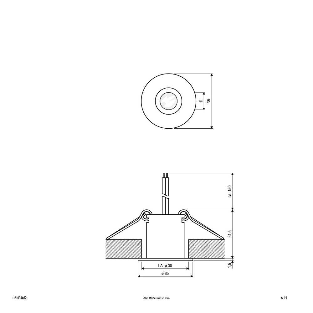 Deckeneinbaulichtpunkt für vielfältige Anwendungen im Innenbereich. Sowohl Effektbeleuchtungen, Akzentuierte Beleuchtung und vieles mehr, lassen sich mit dieser Leuchte umsetzten. Dank der MM-Kennzeichnung kann die Leuchte auch im Möbelbau zum Einsatz gebracht werden. Es können mehrere Leuchten über ein Betriebsgerät betrieben werden, wodurch sich verschiedene Lichtgruppen innerhalb eines Raums schalten lassen. Der Lichtpunkt verfügt über eine 0,15m lange Anschlussleitung.