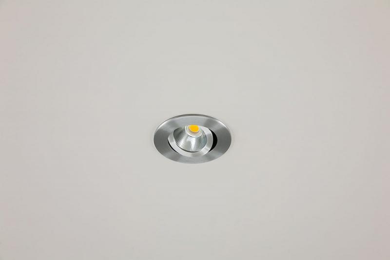 Mit der COB-LED Deckeneinbauleuchte lassen sich vielfältige Anwendungen im Innenbereich, wie z. B. Effektbeleuchtung, Raumbeleuchtung, Akzentuierte Beleuchtung und vieles mehr realisieren. Da außerdem die MM-Kennzeichnung gegeben ist, lässt sich diese sogar im Möbelbau verwenden. Zusätzliche Kosten für Leuchtmittel entfallen bei dieser Leuchte, da die Leistung von einem fest verbauten LED-Chip geliefert wird. Dank der Konstantstromversorgung lassen sich auch mehrere Leuchten über ein Netzgerät betreiben, wobei hierbei der optional erhältliche 6-fach-AMP-Verteiler (P-LEDAMP006) verwendet werden kann. Die 30cm lange Anschlussleitung ist mit einem AMP-Stecker versehen. Die Dimmart ist abhängig vom jeweils verwendetem Netzgerät. Sofern jede Leuchte mit einem eigenen Netzgerät betrieben werden soll, wäre die perfekte Ergänzung das PLD6514, welches zum einen einfach über den AMP-Stecker mit der Leuchte verbunden werden kann und außerdem sowohl über Phasenan- und Phasenabschnitt dimmbar ist. Der Schwenkwinkel beträgt 20°.