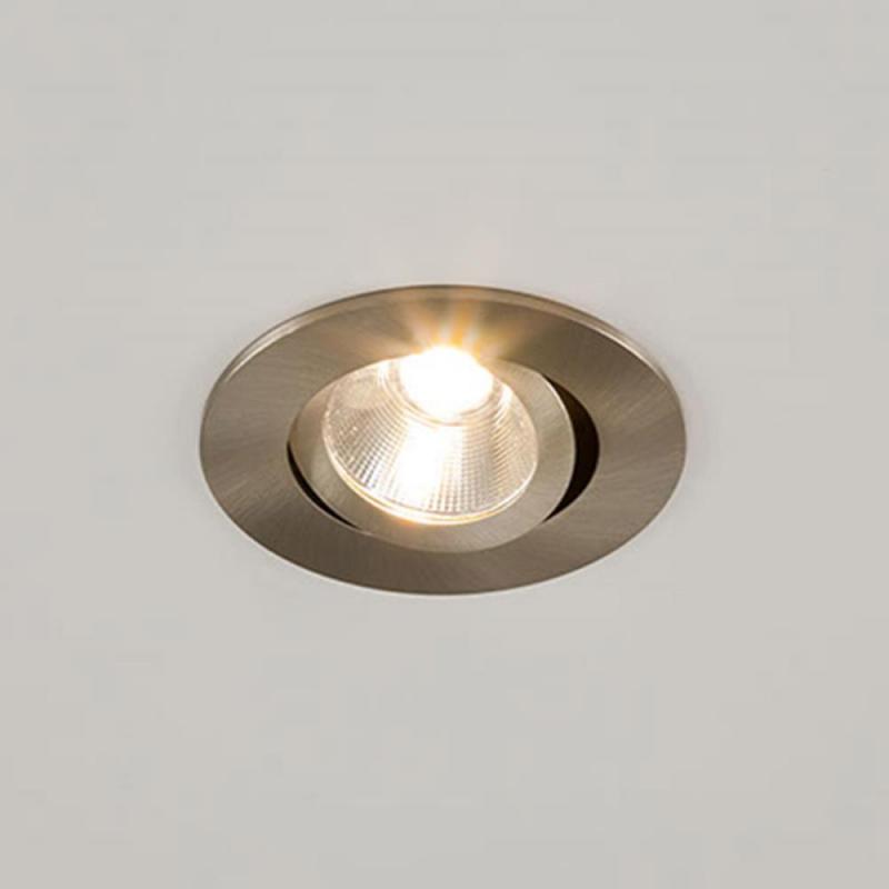 Die COB-LED Deckeneinbauleuchte ist mit einer dim2warm LED ausgestattet, dies bedeutet, dass sich beim Dimmen die Lichtfarbe im Farbbereich von 2000K-3000K mit verändert. Somit lassen sich vielfältige Anwendungen im Innenbereich, wie z. B. Effektbeleuchtung, Raumbeleuchtung, Akzentuierte Beleuchtung und vieles mehr realisieren. Da außerdem die MM-Kennzeichnung gegeben ist, lässt sich diese sogar im Möbelbau verwenden. Zusätzliche Kosten für Leuchtmittel entfallen bei dieser Leuchte, da die Leistung von einem fest verbauten LED-Chip geliefert wird. Dank der Konstantstromversorgung lassen sich auch mehrere Leuchten über ein Netzgerät betreiben, wobei hierbei der optional erhältliche 6-fach-AMP-Verteiler (P-LEDAMP006) verwendet werden kann. Die 30cm lange Anschlussleitung ist mit einem AMP-Stecker versehen. Die Dimmart ist abhängig vom jeweils verwendetem Netzgerät. Sofern jede Leuchte mit einem eigenen Netzgerät betrieben werden soll, wäre die perfekte Ergänzung das PLD109, welches zum einen einfach über den AMP-Stecker mit der Leuchte verbunden werden kann und außerdem sowohl über Phasenan- und Phasenabschnitt dimmbar ist. Der Schwenkwinkel beträgt 20°. Die angegebenen 600lm werden im ungedimmten Betrieb (3000K) erreicht, während bei voller Dimmung (2000K) 60lm erreicht werden.