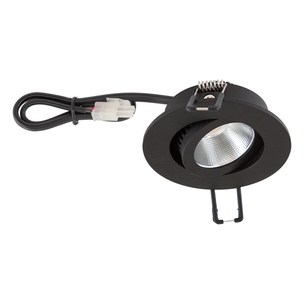 Mit der COB-LED Deckeneinbauleuchte lassen sich vielfältige Anwendungen im Innenbereich, wie z. B. Effektbeleuchtung, Raumbeleuchtung, Akzentuierte Beleuchtung und vieles mehr realisieren. Da außerdem die MM-Kennzeichnung gegeben ist, lässt sich diese sogar im Möbelbau verwenden. Zusätzliche Kosten für Leuchtmittel entfallen bei dieser Leuchte, da die Leistung von einem fest verbauten LED-Chip geliefert wird. Dank der Konstantstromversorgung lassen sich auch mehrere Leuchten über ein Netzgerät betreiben, wobei hierbei der optional erhältliche 6-fach-AMP-Verteiler (P-LEDAMP006) verwendet werden kann. Die 30cm lange Anschlussleitung ist mit einem AMP-Stecker versehen. Die Dimmart ist abhängig vom jeweils verwendetem Netzgerät. Sofern jede Leuchte mit einem eigenen Netzgerät betrieben werden soll, wäre die perfekte Ergänzung das PLD109, welches zum einen einfach über den AMP-Stecker mit der Leuchte verbunden werden kann und außerdem sowohl über Phasenan- und Phasenabschnitt dimmbar ist. Der Schwenkwinkel beträgt 20°, Gehäusefarbe ähnlich RAL9004.