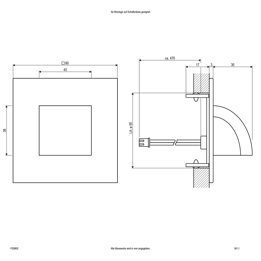 Die LED-Halbeinbauleuchte ist so konzipiert, dass diese entweder in der Wand, oder wahlweise auch in Schalterdosen montiert werden kann. Auf Grund der Bauform und Leistung ist die Leuchte perfekt als Orientierungsleuchte geeignet. Da die Leuchte über 350mA betrieben wird, sind die Leuchten in Reihe zu schalten.