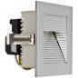 Wandeinbauleuchte für die verschiedensten Anwendungen im Innenbereich. Um einen Blendeffekt zu vermeiden, ist die Leuchte mit einem strukturierten Reflektor, sowie einer strukturiertem Abdeckung versehen. Zusätzlich zu den Spannfedern, kann die Leuchte auch mit zwei Schrauben fixiert werden, wobei die Schraubenköpfe von der Abdeckung verdeckt werden. Es dürfen Leuchtmittel bis max. 25W in der Leuchte betrieben werden. Bei Verwendung des optional erhältlichen Einputztopfs, muss die Rückseitig angebrachte Zugentlastung versetzt werden, wobei darauf zu achten ist dass die Erdung am Leuchtenkörper angeschlossen bleibt.