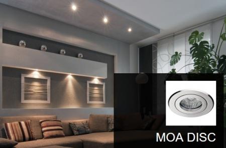 Die hochwertig verarbeitete Einbauleuchte MOA DISC MR11 aus Aluminium ist in 3 Gehäusefarben erhältlich. Der herausziehbare Innenring ermöglicht einen schnellen Leuchtmittelwechsel. Die kompakte Leuchte für MR11 Leuchtmittel ist bis zu 45° schwenkbar. Im Lieferumfang ist eine GU4 12V Fassung mit 25cm Zuleitung enthalten.