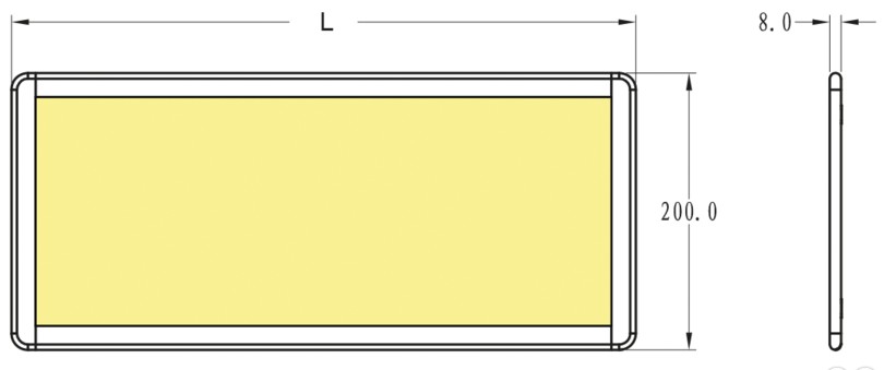 Abmessungen LxB/ØxH: L600xB200xH8 mm