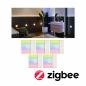 Das effiziente 100x10mm LumiTiles LED Fliesen Square Basisset mit einer Leistung von 5x0,8W besteht aus fünf Fliesen, vier Verbindungskabel (Länge: 60 cm), einem Trafo inkl. Anschluss sowie einem RGBW Zigbee Controller. Die LED Fliesen mit RGBW-Multicolor Farbwechselfunktion haben eine minimale Einbautiefe von nur 10 mm. Sie passen damit zwischen Standard-Wandfliesen und lassen sich über den Anschluss am Lichtschalter einfach steuern. Die fünf Lichtmodule werden frei innerhalb des Fliesenspiegels angeordnet und ganz einfach per Plug & Play Stecker-System verbunden. Die Module können wahlweise per Kabel mit 65, 105 oder 205 cm Abstand angeschlossen werden. Innovative leuchtende Fliesen machen das Fliesenprojekt zum echten Highlight! Die Lichtmodule erzeugen ein dekoratives, flächiges Akzentlicht fest integriert in den Fliesenspiegel in Bad oder Küche. Das Paulmann LumiTiles System ist dank seiner enormen Flexibilität, der einfachen Montage und extra langen Lebensdauer passend für jedes Projekt.