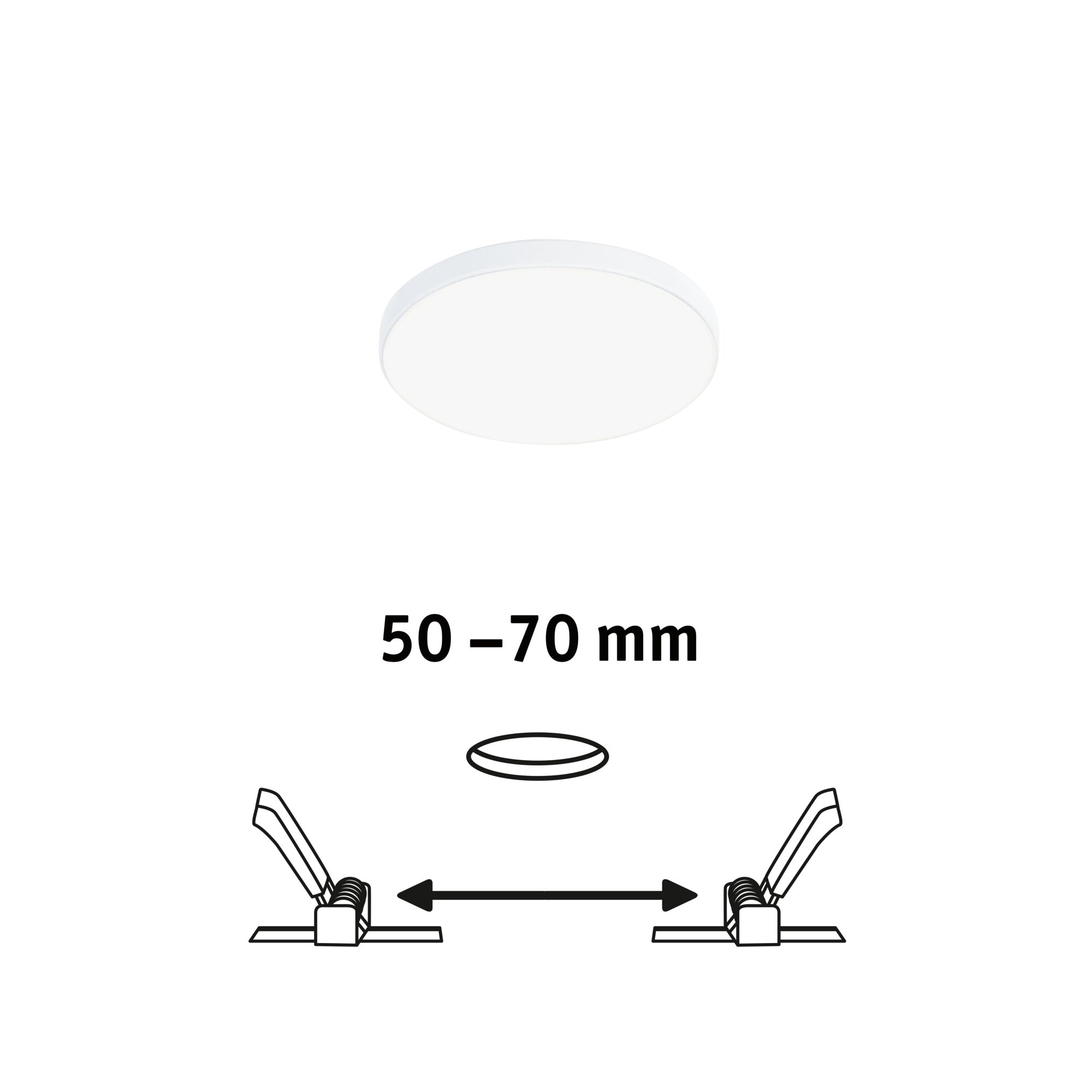 Das dimmbare, runde Einbaupanel Veluna VariFit Edge überzeugt mit einem modernen, rahmenlosen Design im dezenten Weiß. Mit einem Durchmesser von 90 mm und einer Farbtemperatur von 4000K sorgt das Panel für eine hohe, gleichmäßige Lichtausbeute. Dank flexibler VariFit-Technik lassen sich die Klemmfedern für den Einbau stufenlos zwischen 50 und 70 mm einstellen. Damit kann das Panel sowohl in bereits vorhandene als auch in neue Bohrlöcher eingebaut werden. Bei einem Bohrlochdurchmesser von 50 mm wird eine Hohlraumtiefe von 35 mm benötigt. Die satinierte Kunststoffabdeckung schafft eine feine Lichtstreuung und strahlendes, aktivierendes Licht im Neutralweiß, welches dank der Dimm-Funktion individuell einstellbar ist.
