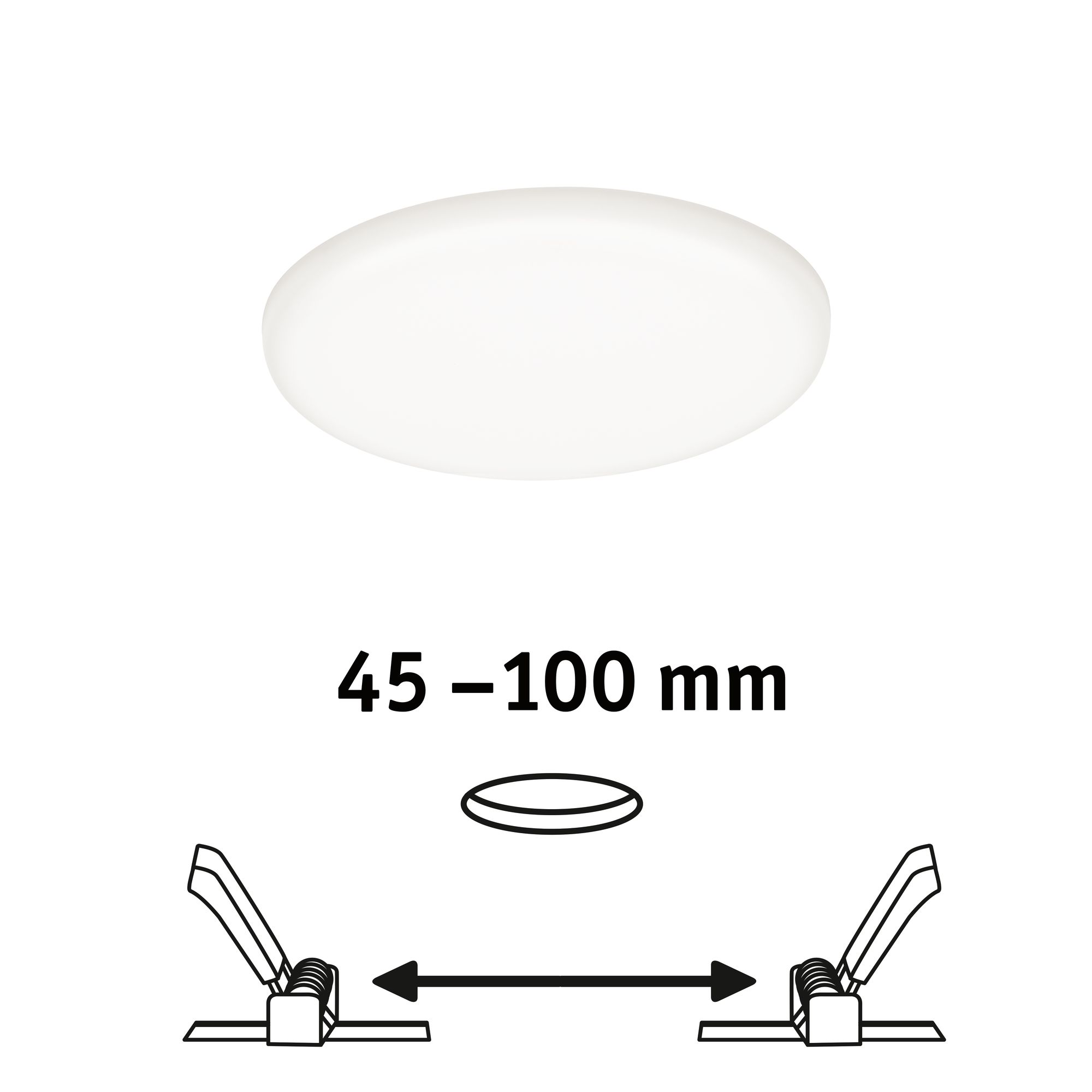 Das rahmenlose Veluna Panel mit einer Leistung von 8,5 Watt sorgt für flächiges neutralweißes Licht. Dank flexibler VariFit-Technik lassen Sie sich Klemmfedern für den Einbau stufenlos zwischen 45 und 100 mm einstellen. Damit kann das Panel sowohl in bereits vorhandene Bohrlöcher als auch in neue mit Standard Bohrkrone eingebaut werden.