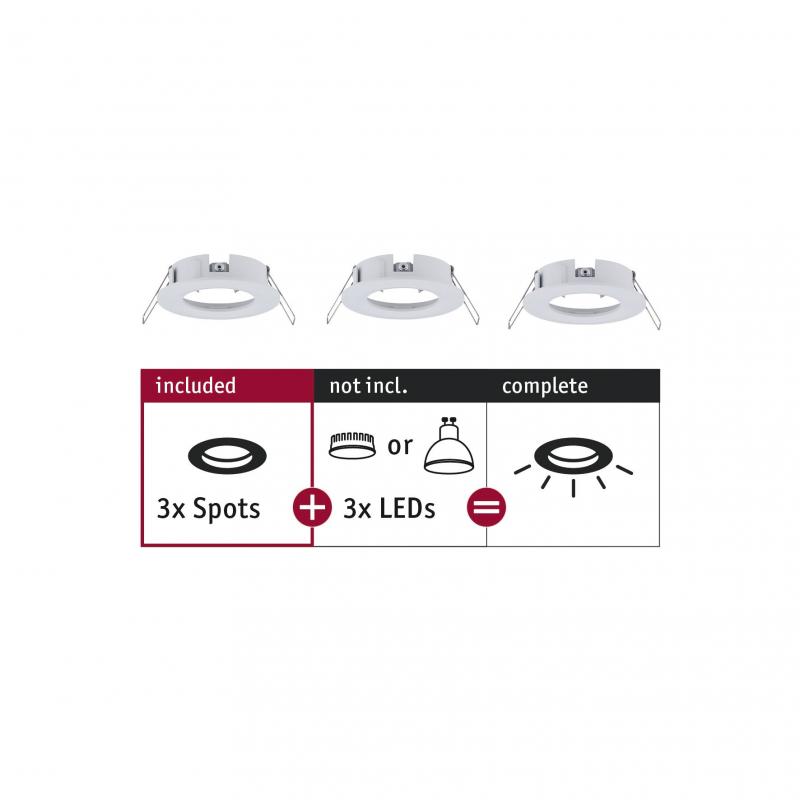Die starren Einbauringe in der Farbe Weiß matt sind mit allen Leuchtmitteln aus der Choose-Serie kompatibel. Dank IP44 Spritzwasserschutz eignen sie sich auch für Feuchträume. Mit Choose lassen sich Wunscheinbauleuchten ganz einfach selbst kombinieren. Die Einbauleuchten sind endlos verkettbar, benötigen keinen Trafo und alle Leuchtmittel sind wechselbar.