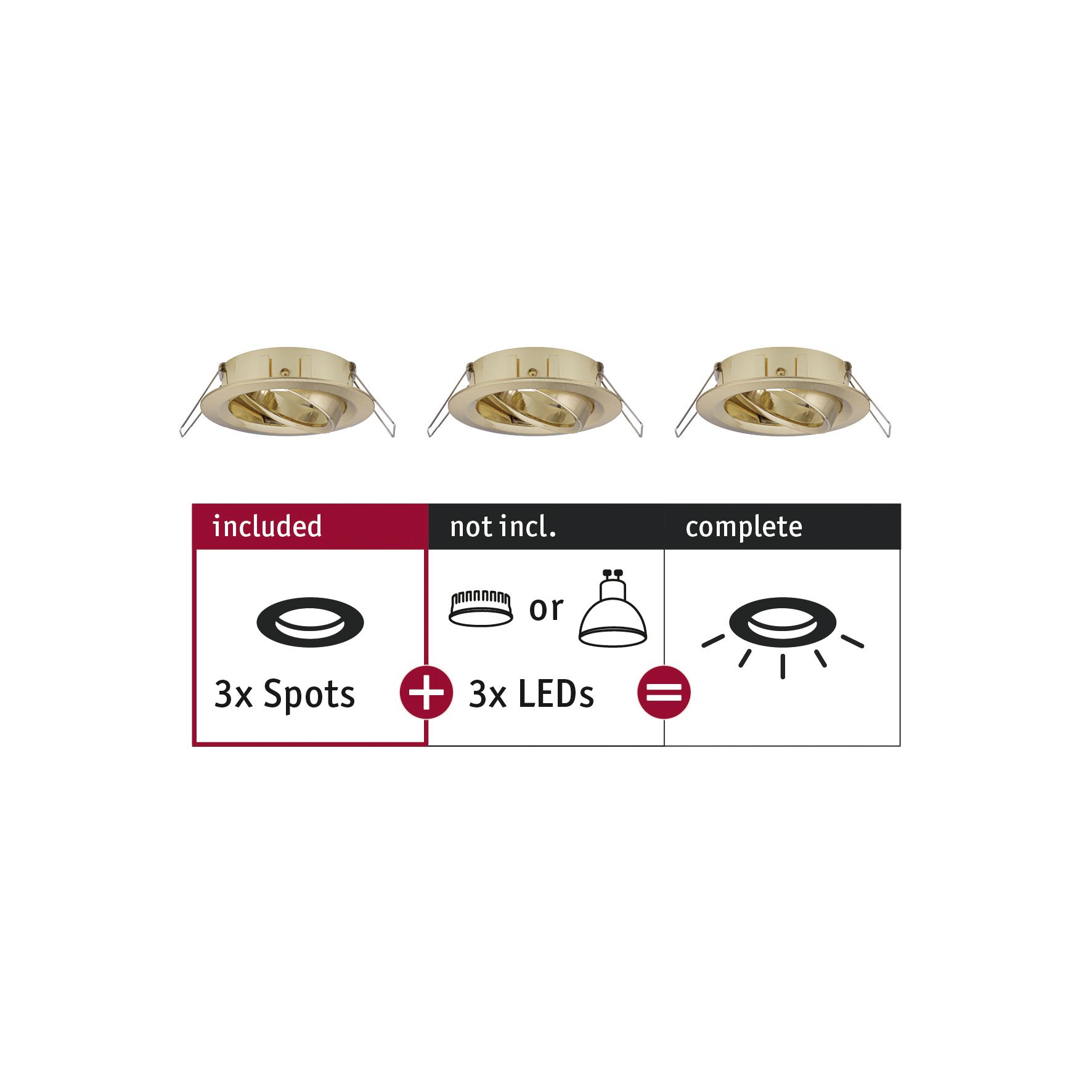 Die schwenkbaren Einbauringe in der Farbe Messing gebürstet sind mit allen Leuchtmitteln aus der Choose-Serie kompatibel. Mit Choose lassen sich Wunscheinbauleuchten ganz einfach selbst kombinieren. Die Einbauleuchten sind endlos verkettbar, benötigen keinen Trafo und alle Leuchtmittel sind wechselbar.