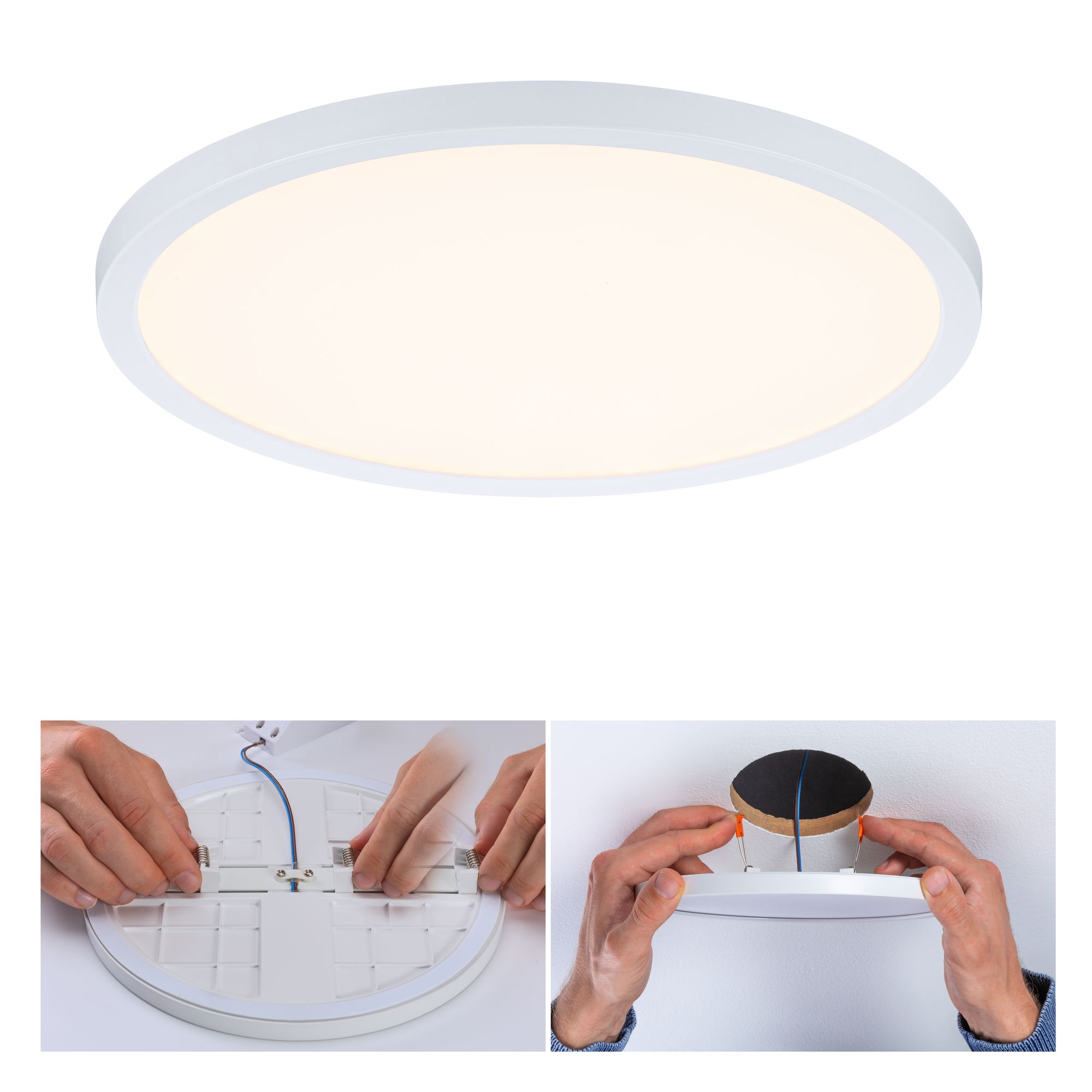 Das runde Einbaupanel Areo mit einem Durchmesser von 230 mm und einer Leistung von 16 Watt in Weiß sorgt für flächiges warmweißes Licht. Dank flexibler VariFit-Technik lassen Sie sich Klemmfedern für den Einbau stufenlos zwischen 50 und 195 mm einstellen. Damit kann das Panel sowohl in bereits vorhandene Bohrlöcher als auch in neue eingebaut werden. Mit der integrierten 3-step-dim Funktion, kann es durch mehrmaliges Betätigen eines handelsüblichen Lichtschalters in drei Stufen gedimmt werden. Die Memory-Funktion merkt sich die zuletzt verwendete Stufe bis zum nächsten Einschalten.