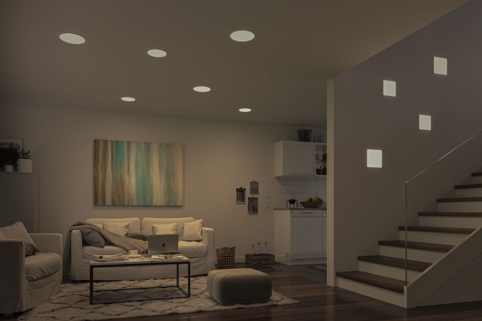Das rahmenlose Veluna Panel mit einer Leistung von 17,5 Watt sorgt für flächiges neutralweißes Licht. Dank flexibler VariFit-Technik lassen Sie sich Klemmfedern für den Einbau stufenlos zwischen 45 und 160 mm einstellen. Damit kann das Panel sowohl in bereits vorhandene Bohrlöcher als auch in neue mit Standard Bohrkrone eingebaut werden. Mit der integrierten 3-step-dim Funktion, kann es durch mehrmaliges Betätigen eines handelsüblichen Lichtschalters in drei Stufen gedimmt werden. Die Memory-Funktion merkt sich die zuletzt verwendete Stufe bis zum nächsten Einschalten. Die mögliche Einbautiefe ist abhängig von der gewählten Einbauöffnung: bei 68mm Einbauöffnung muss die Einbautiefe 55mm betragen, bei 90mm Einbauöffnung sind 30mm Einbautiefe nötig.
