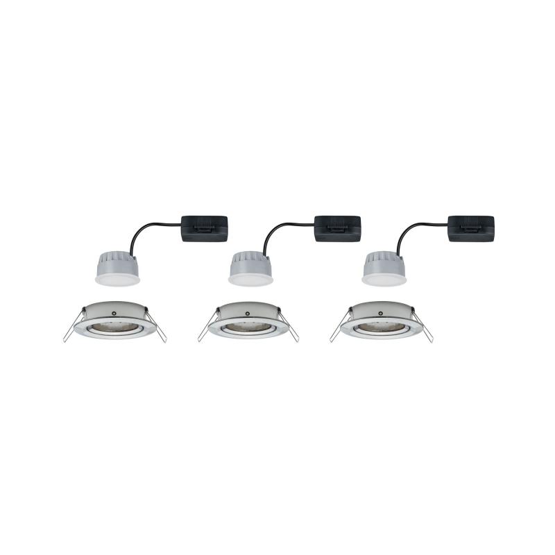 Nova Einbaustrahler 3x6,5W aus Alu in Eisen gebürstet, bieten Ihnen gutes Licht, stimmiges Design und hohe Energieeffizienz. Die puristische Optik wird nicht von Sprengringen gestört: Da das Leuchtmittel von hinten eingesetzt wird ist kein Sprengring notwendig. Dank 230V-Direktanschluss, können Sie die Leuchten ganz einfach uneingeschränkt miteinander verketten. Durch die unkomplizierte Fixierung mit Haltefedern, bleibt die Zimmerdecke auch nach mehrmaligem Ein- und Ausbau unbeschädigt. Im Lieferumfang sind effiziente und langlebige Coin LED-Leuchtmittel enthalten, die mit ihrem warmweißen Licht für ein stimmungsvolles Ambiente sorgen.