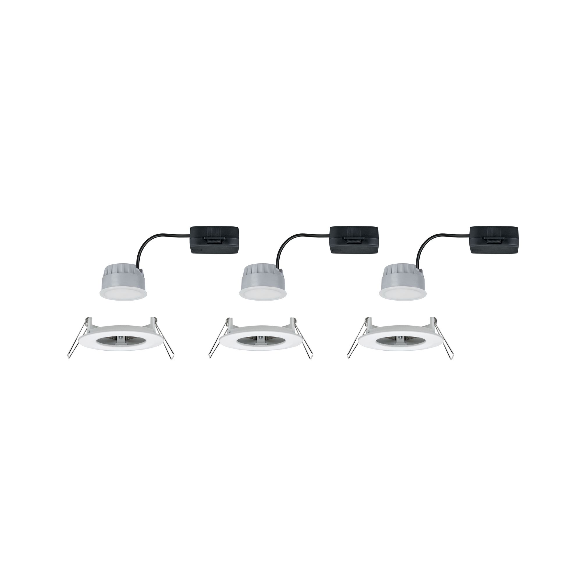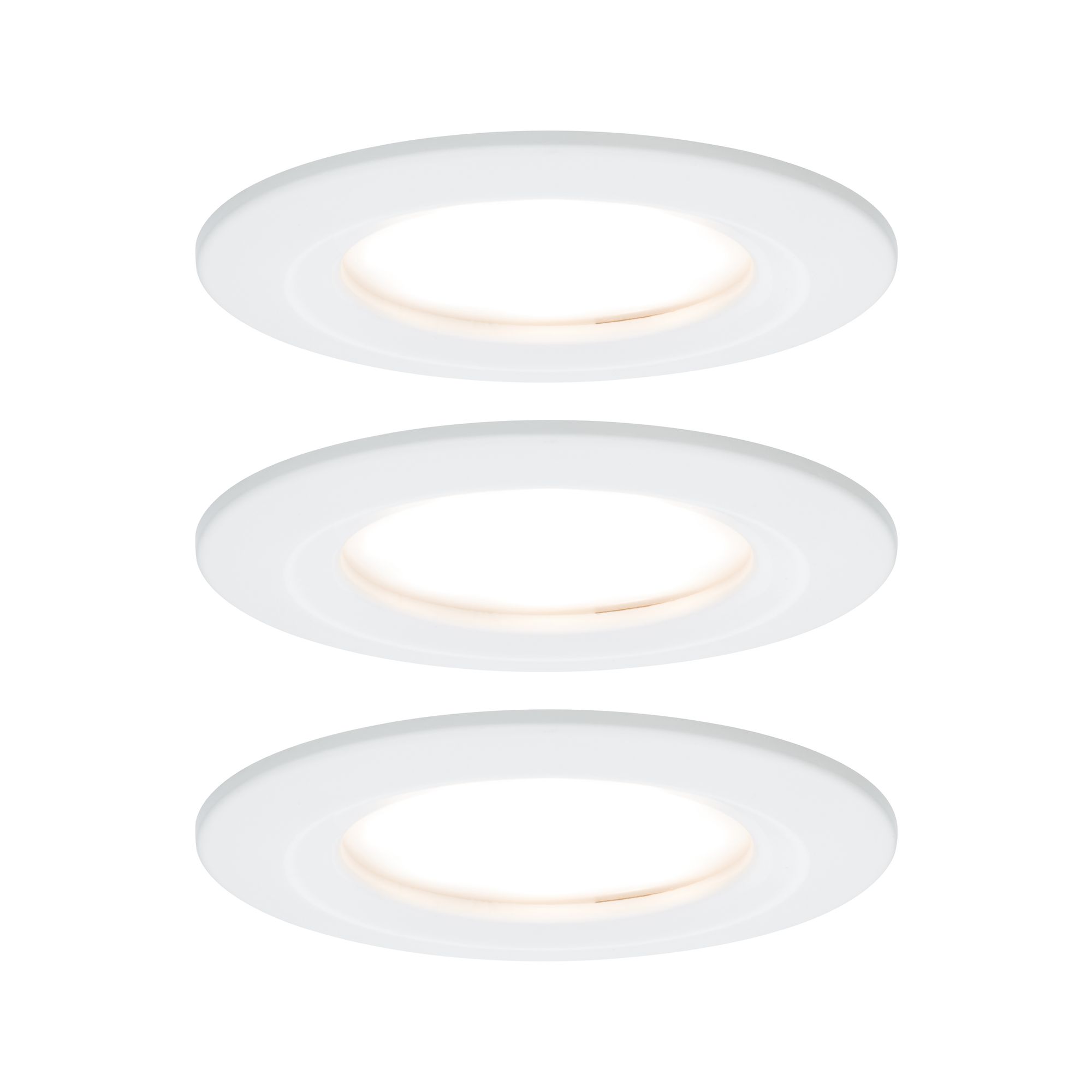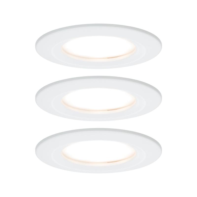 Nova Einbaustrahler 3x6,5W aus Alu in Weiß matt, bieten Ihnen gutes Licht, stimmiges Design und hohe Energieeffizienz. Die puristische Optik wird nicht von Sprengringen gestört: Da das Leuchtmittel von hinten eingesetzt wird ist kein Sprengring notwendig. Dank 230V-Direktanschluss, können Sie die Leuchten ganz einfach uneingeschränkt miteinander verketten. Durch die unkomplizierte Fixierung mit Haltefedern, bleibt die Zimmerdecke auch nach mehrmaligem Ein- und Ausbau unbeschädigt. Im Lieferumfang sind effiziente und langlebige Coin LED-Leuchtmittel enthalten, die mit ihrem warmweißen Licht für ein stimmungsvolles Ambiente sorgen.