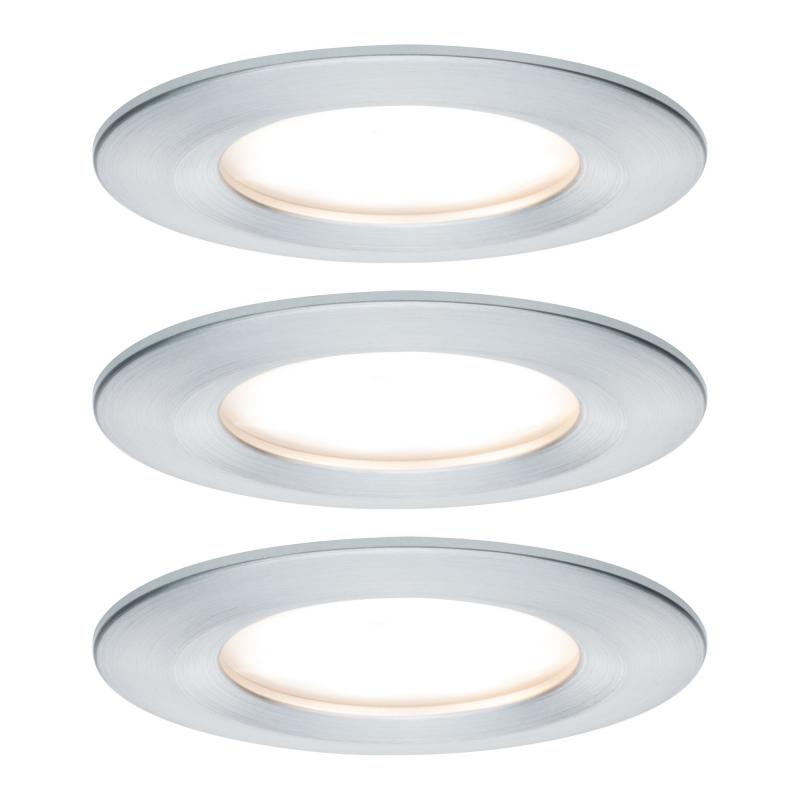 Die runden Nova Plus Einbauleuchten (3er-Set) in Alu gedreht mit tauschbarem LED-Coin, eignen sich sowohl für Neuinstallationen als auch für den Austausch bestehender Installationen. Sie sind besonders flach und können deshalb in Decken mit einem Hohlraum von nur 30 Millimetern eingebaut werden. Durch die Verkettung der Einzelleuchten mittels Schnellklemmen, lassen sie sich schnell und einfach einbauen. Die Dimmfunktion ermöglicht eine individuelle Anpassung der Helligkeit und sorgt für warmweißes Arbeitslicht und gemütliche Wohlfühlbeleuchtung in einem. Mit ihrem IP44-Spritzwasserschutz sorgen die Leuchten auch im Badezimmer und in der Küche für wohnliches Licht.