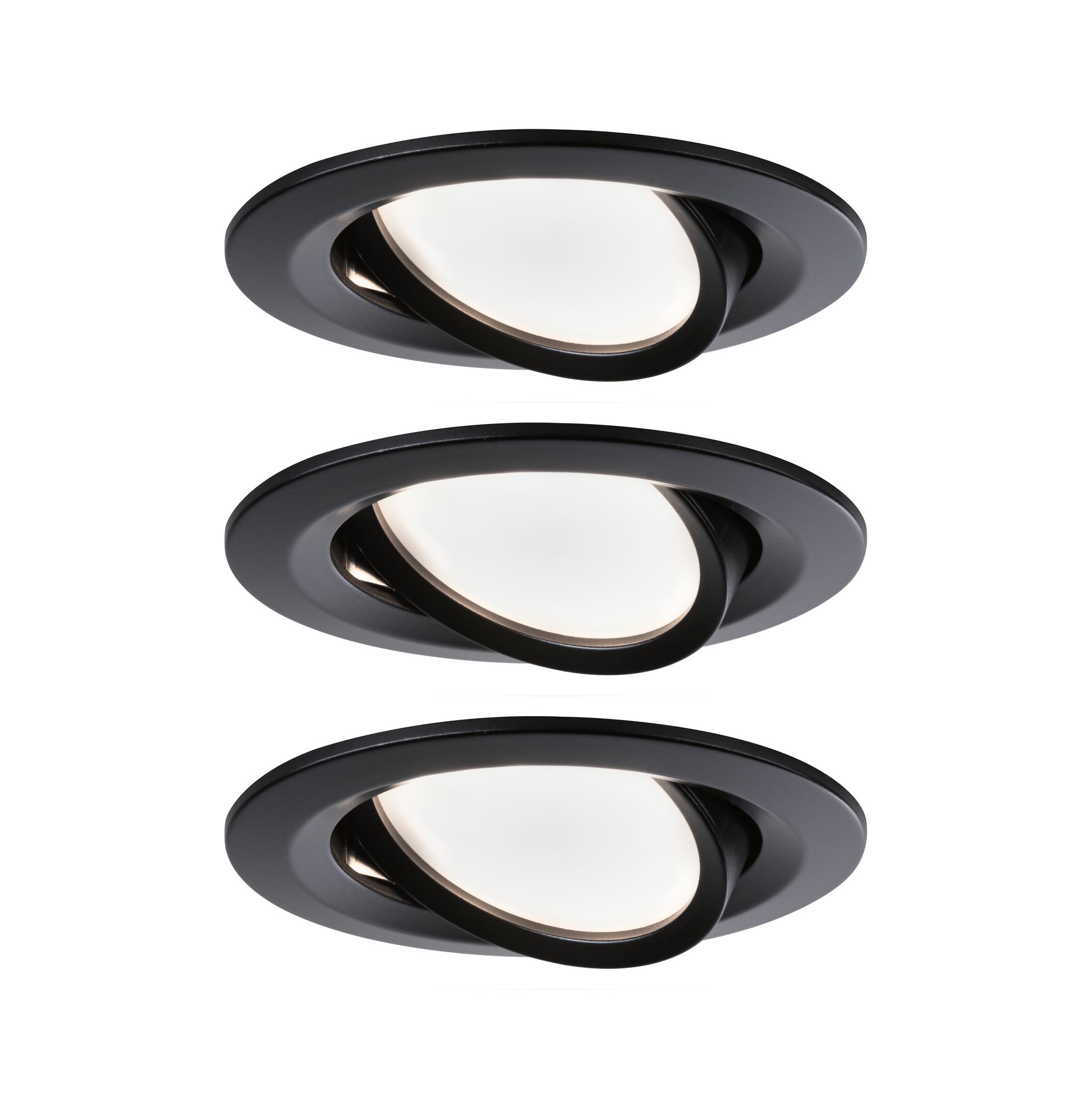 Diese schwenkbaren und dimmbaren Einbaustrahler Nova 3x6,5 Watt aus Alu in Schwarz matt, bieten gutes Licht, stimmiges Design und hohe Energieeffizienz. Da das Leuchtmittel von hinten eingesetzt wird, ist kein Sprengring notwendig. Somit wird die puristische Optik von keinen Sprengringen gestört. Dank 230V-Direktanschluss, lassen sich die Leuchten ganz einfach uneingeschränkt miteinander verketten. Durch die unkomplizierte Fixierung mit Haltefedern bleibt die Zimmerdecke auch nach mehrmaligem Ein- und Ausbau unbeschädigt. Im Lieferumfang sind effiziente und langlebige LED-Leuchtmittel enthalten, die mit ihrem warmweißen Licht für ein stimmungsvolles Ambiente sorgen.