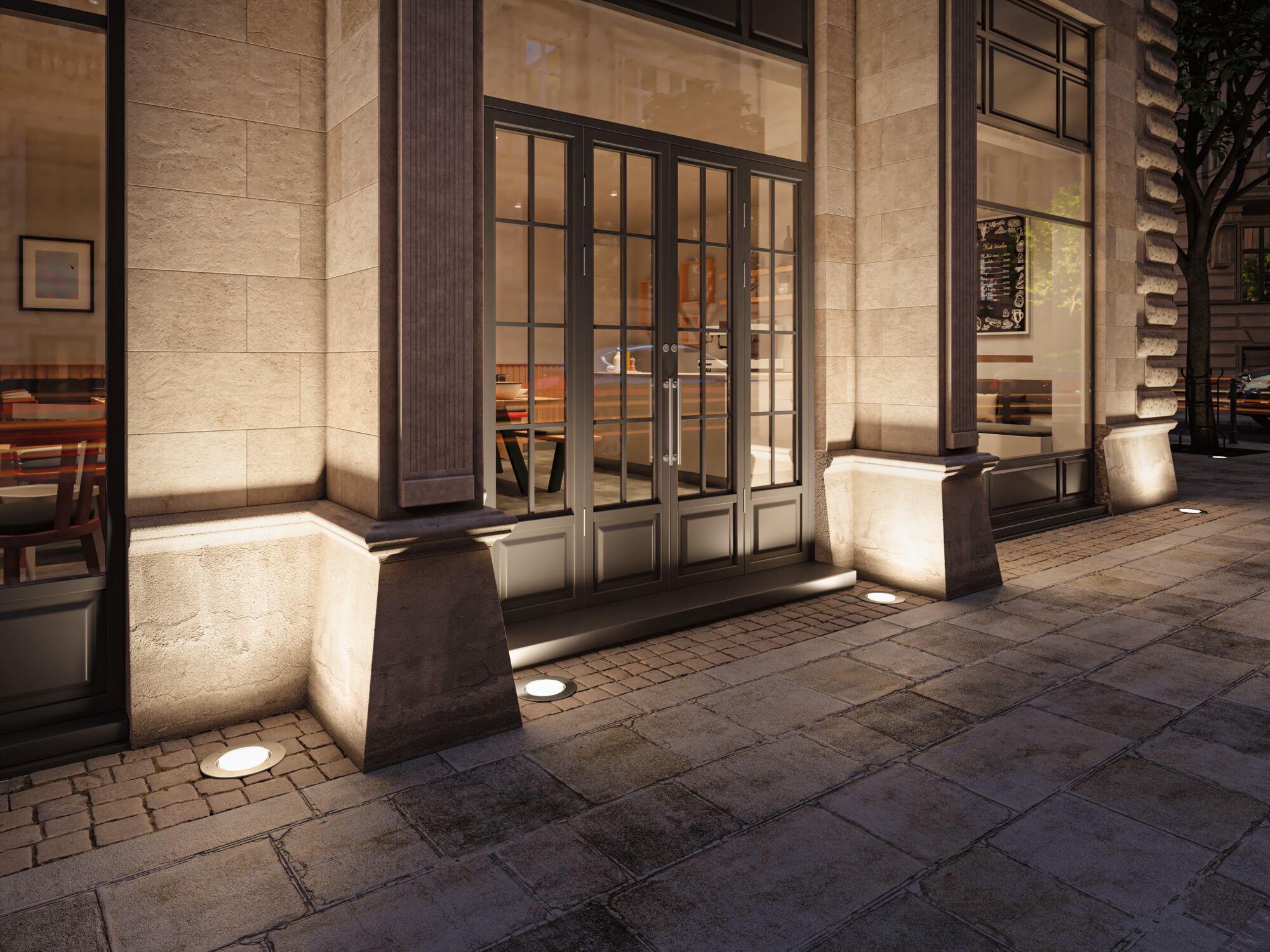 Ob Fassade, Einfahrt oder den Weg zum Haus - der LED Bodeneinbaustrahler Durea mit einem Durchmesser von 213mm leuchtet den gewünschten Außenbereich sicher aus. Dank einer hohen Belastbarkeit von 2000 kg eignet sich die Bodeneinbauleuchte ideal für begehbare Außenbereiche. Rostfrei, wasser- und staubdicht spendet er warmweißes Licht bei jeder Wetterlage. Das eingebaute LED-Modul kann bei Bedarf ausgetauscht werden. Durch die werkzeuglose Verkettung der Bodeneinbaustrahler mittels Schnellklemmen, können schnell und einfach mehrere Strahler hintereinander verbunden werden. Das hat den Vorteil, dass die Bodenleuchten nicht einzeln an den Strom angeschlossen werden müssen. Ein Einbaugehäuse ist im Lieferumfang enthalten.