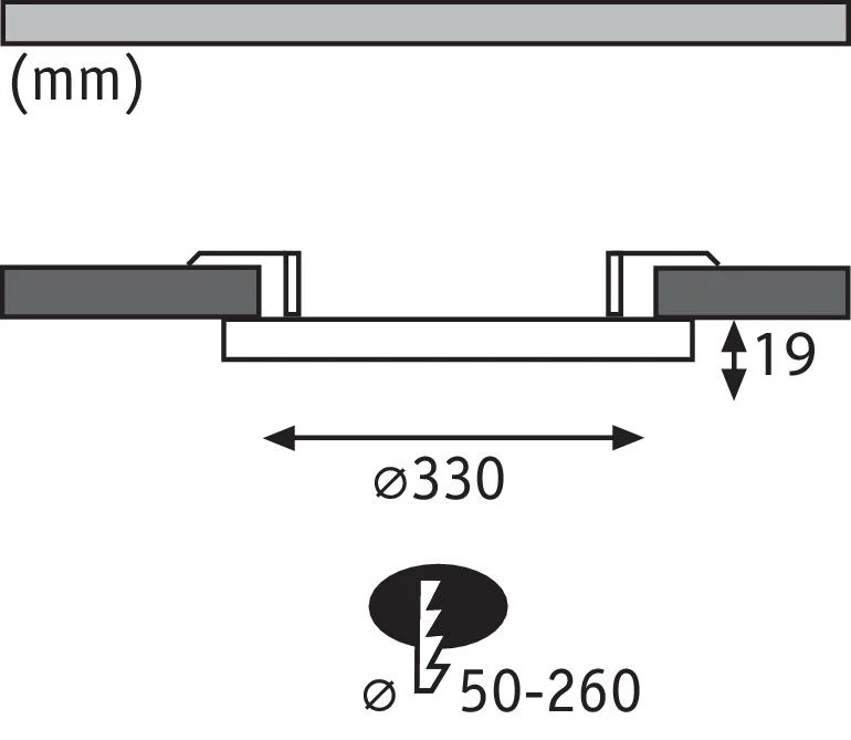Ø (mm): 330, Einbaudurchmesser 50 mm, Bohrlochgröße 5 - 26 cm