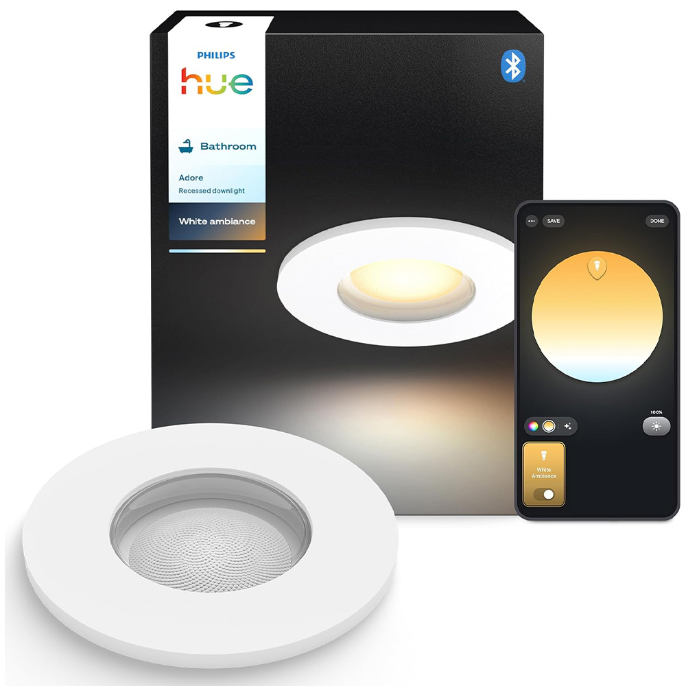 Der Philips Hue Adore Einbaustrahler ist die perfekte Kombination aus intelligentem Lichtkomfort, modernem Design und robuster Funktionalität – speziell entwickelt für den Innenbereich, insbesondere Badezimmer und andere feuchte Räume. Mit seinem flächenbündigen, weißen Gehäuse fügt sich dieser elegante Downlight Spot harmonisch in jede Decke ein und bietet dir eine hochwertige Beleuchtung, die du genau an deine Bedürfnisse anpassen kannst. Durch die IP44‑Schutzart ist der Einbaustrahler zuverlässig gegen Spritzwasser geschützt und eignet sich ideal für Bereiche wie Badezimmer, Küche, Waschplatz oder Duschzone, wo klassische Lampen oftmals an ihre Grenzen gelangen.