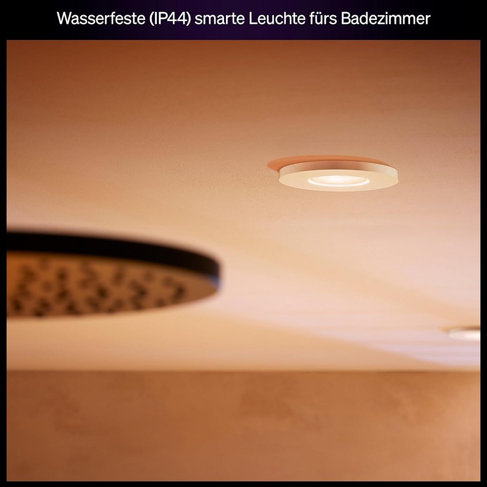 Dank der White Ambiance Technologie kannst du den Lichtton von warmweiß bis kaltweiß variieren. Warmweißes Licht schafft eine entspannte, gemütliche Atmosphäre am Abend, während kühleres Licht am Morgen für einen klaren, energiegeladenen Start in den Tag sorgt. Die beiliegende smarte GU10‑Lampe ermöglicht eine direkte Nutzung und liefert bis zu ca. 400 Lumen Lichtstrom, wobei du über die Philips Hue App oder passende Smart‑Home‑Systeme nicht nur die Helligkeit anpassen, sondern auch dynamische Szenen und Zeitpläne steuern kannst.
