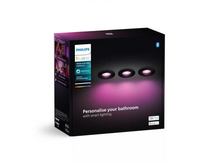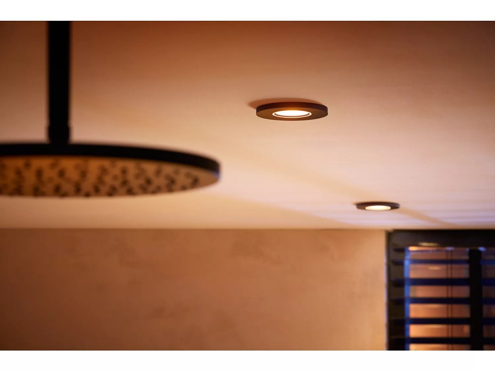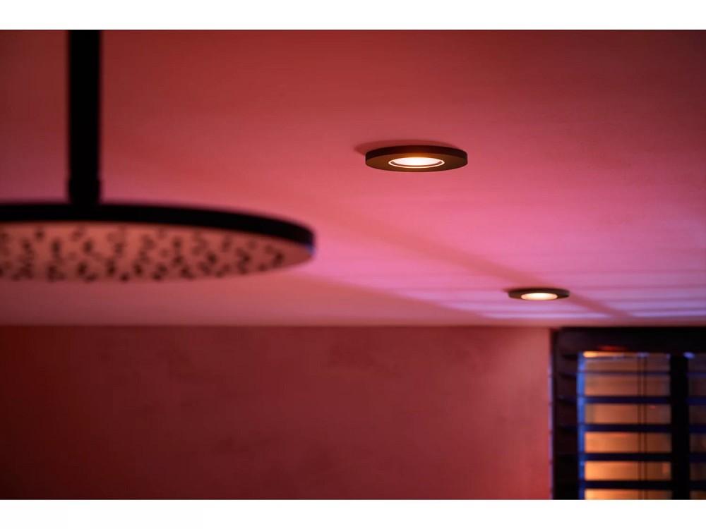 Diese drei Hue Xamento Einbau-Downlights in Silber passen mit ihrem modernen Design, ihrem smartem Licht in Millionen Farben und der Schutzart IP44 in jedes Badezimmer. Bringe Spaß in Deinen Alltag oder dimme das Licht, um Dich zu entspannen.
