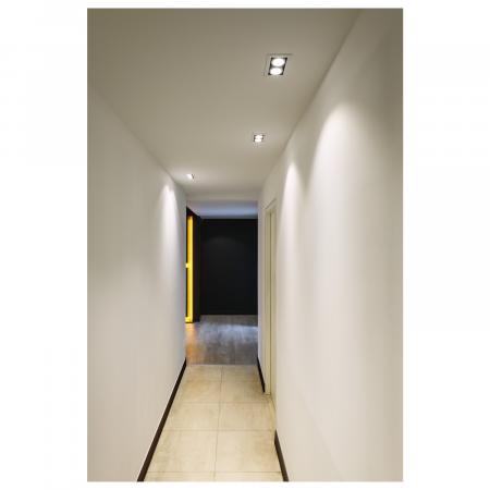 Die neue Generation der KADUX Deckeneinbauleuchte Familie erscheint in einem robusten Leuchtengehäuse mit ansprechend quadratischer Optik. Dabei verströmt die dreiflammige Deckeneinbauleuchte mit einer Ausbeute von 120 lm/W ein noch effizienteres, warmweißes Licht (3.000K), das mit einem CRI über 90 äußerst farbneutral und dimmbar ist. Ideal für den Einsatz in Geschäften, der Hotellerie und Gastronomie – und dank dem direkten Anschluss an 230V Netzspannung auch so schnell wie einfach installiert.