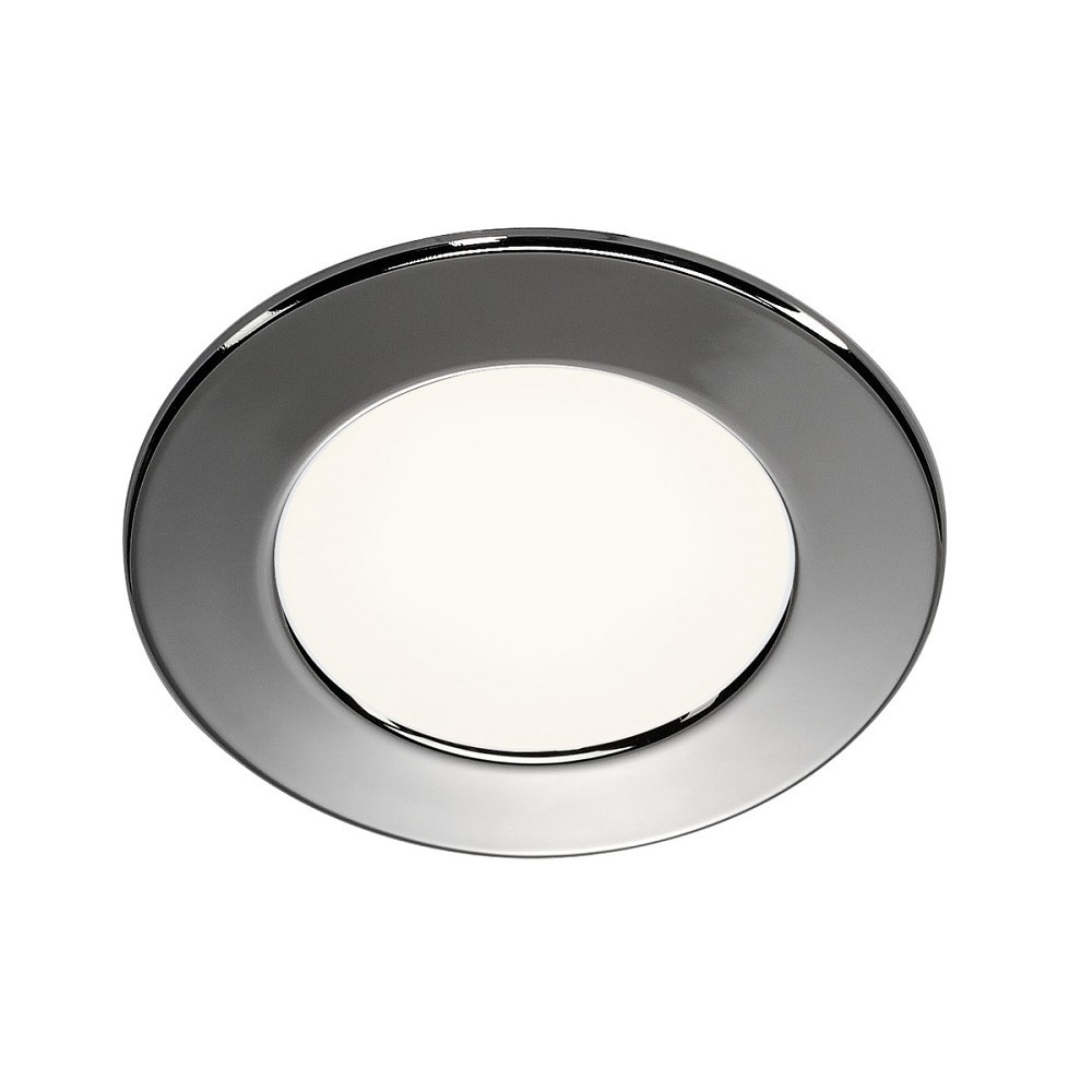 Flaches 12V LED- Downlight - Einbaulampe & Unterbauleuchte rund chrom warmweißes Licht
