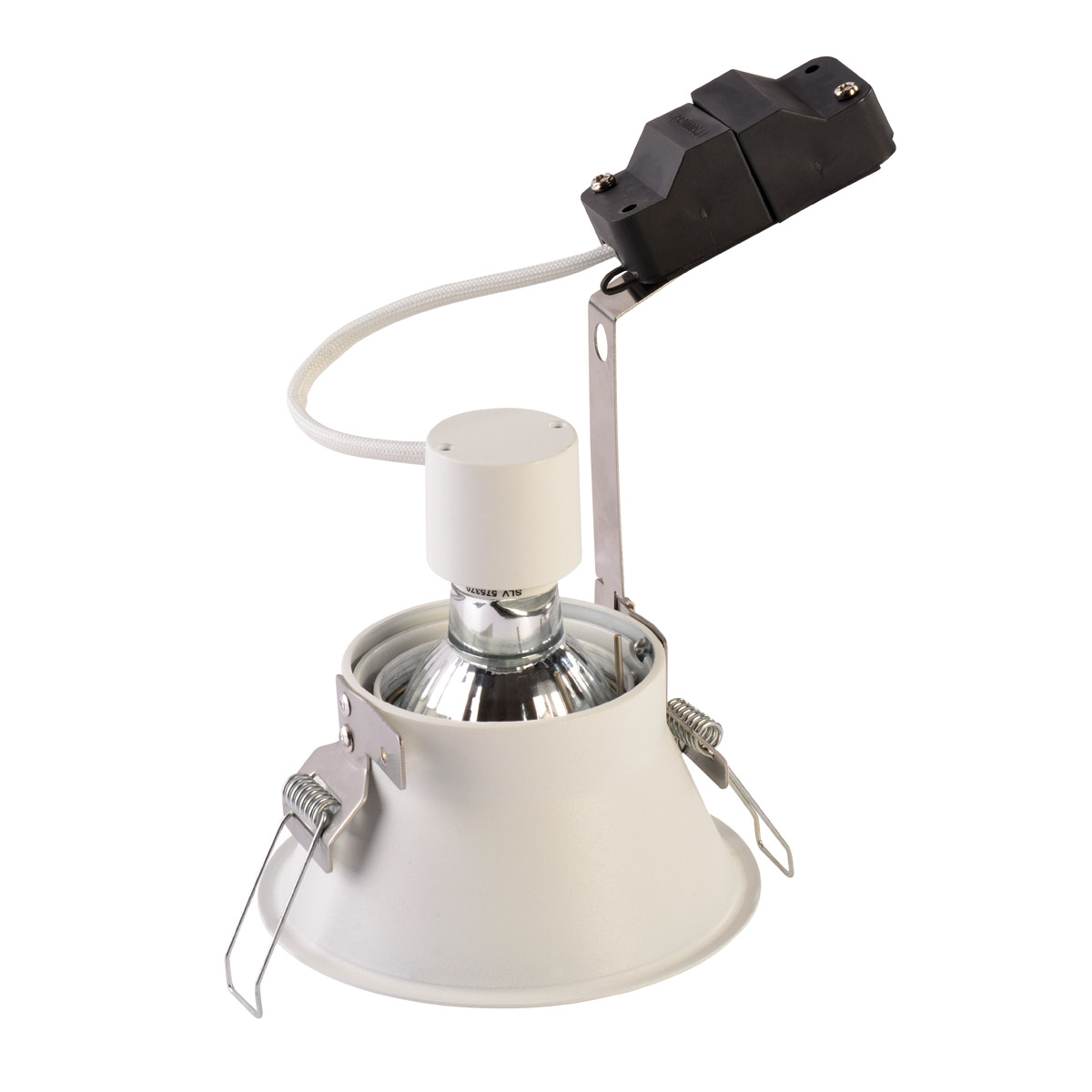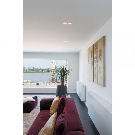 Schwenkbare Hochvolt Einbauleuchte HORN in weiß. Bei der aus Stahl gefertigten Leuchte ist das Leuchtmittel nach hinten versetzt eingebaut. Durch diese Bauweise ergibt sich eine besondere Optik sowie eine wirksame Blendenreduzierung. Des Weiteren sind mehrflammige sowie Niedervolt Versionen verfügbar.