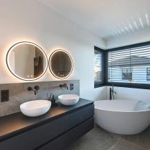 Akzentbeleuchtung - Dies ist direktes Licht, das einen bestimmten Bereich des Badezimmers beleuchtet (z. B. über dem Waschbecken oder dem Spiegel). Es sollte hell genug sein, damit Sie sich rasieren oder schminken können, ohne dabei blinzeln zu müssen.