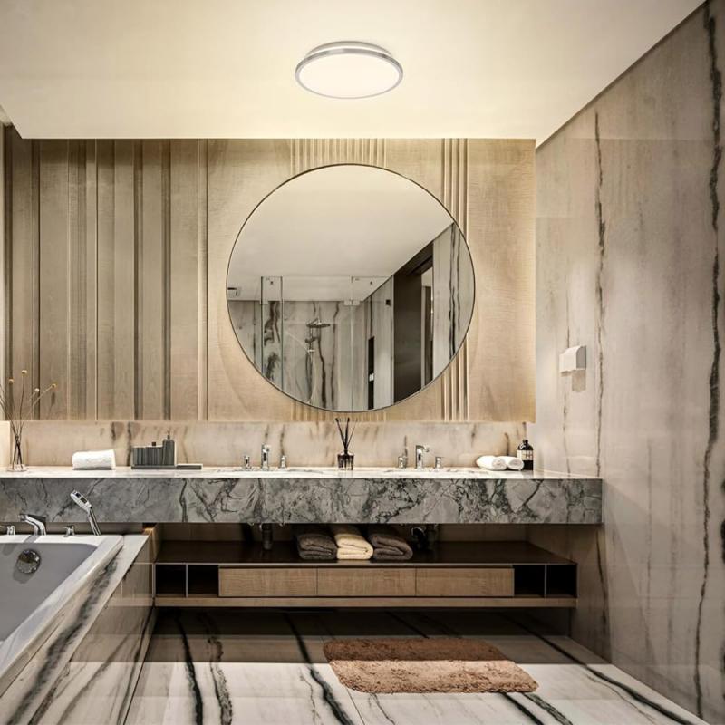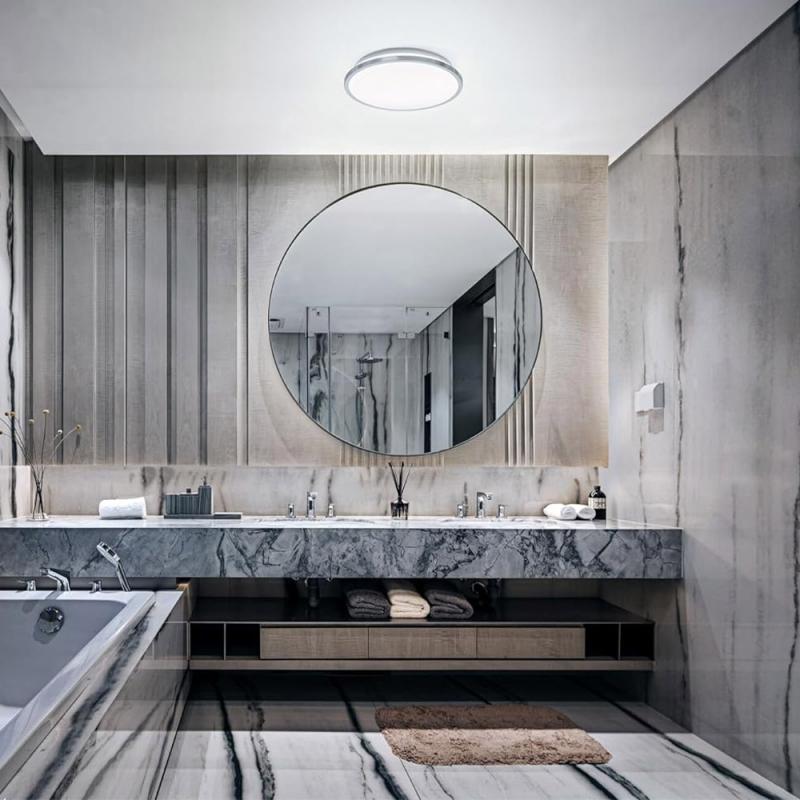Die Deckenlampe Bathroom Ceiling eignet sich ideal zur Bereichs- und Allgemeinbeleuchtung in Badezimmern, Wohn- und Aufenthaltsbereichen. Die integrierten LEDs hinter der opalen Kunststoffabdeckung sorgen für großflächiges Licht. Besonders praktisch ist, dass nicht nur das Ein- und Ausschalten, sondern auch der Wechsel der Farbtemperatur (3.000 K / 4.000 K) über einen herkömmlichen Wandschalter möglich ist. Diese Funktion ermöglicht es Ihnen, die Beleuchtung an Ihre Bedürfnisse anzupassen.