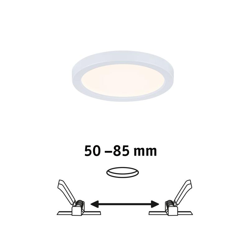 Das runde Einbaupanel Areo mit einem Durchmesser von 118 mm und einer Leistung von 6,5 Watt in Weiß sorgt für flächiges warmweißes Licht. Dank flexibler VariFit-Technik lassen Sie sich Klemmfedern für den Einbau stufenlos zwischen 50 und 85 mm einstellen. Damit kann das Panel sowohl in bereits vorhandene Bohrlöcher als auch in neue eingebaut werden.