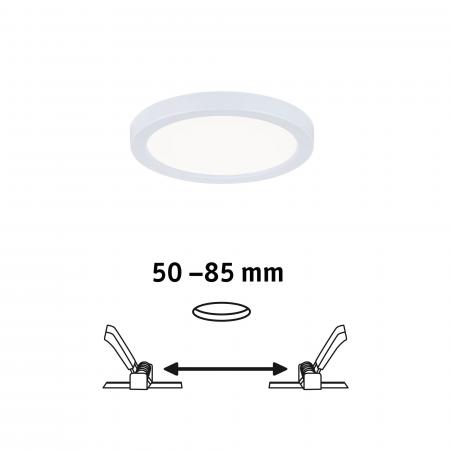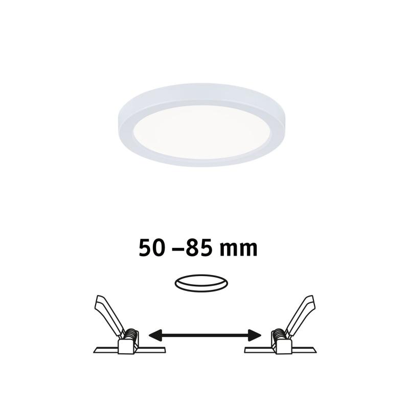 Das runde Einbaupanel Areo mit einem Durchmesser von 118 mm und einer Leistung von 6,5 Watt in Weiß sorgt für flächiges warmweißes Licht. Dank flexibler VariFit-Technik lassen Sie sich Klemmfedern für den Einbau stufenlos zwischen 50 und 85 mm einstellen. Damit kann das Panel sowohl in bereits vorhandene Bohrlöcher als auch in neue eingebaut werden.