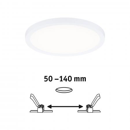 Das runde Einbaupanel Areo mit einem Durchmesser von 175 mm und einer Leistung von 13 Watt in Weiß sorgt für flächiges warmweißes Licht. Dank flexibler VariFit-Technik lassen Sie sich Klemmfedern für den Einbau stufenlos zwischen 50 und 140 mm einstellen. Damit kann das Panel sowohl in bereits vorhandene Bohrlöcher als auch in neue eingebaut werden.