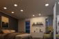Das runde Einbaupanel Areo mit einem Durchmesser von 175 mm und einer Leistung von 13 Watt in Weiß sorgt für flächiges, blendfreies Licht. Dank flexibler VariFit-Technik lassen sich die Klemmfedern für den Einbau stufenlos zwischen 50 und 140 mm einstellen. Damit kann das Panel sowohl in bereits vorhandene Bohrlöcher als auch in neue eingebaut werden. Über die Tunable White Funktion lässt sich die Lichtfarbe nach Bedarf einstellen: von tageslichtweißem Arbeitslicht bis hin zu warmweißer Entspannungsbeleuchtung. Die Lampe ist Zigbee 3.0 kompatibel. Zigbee 3.0 ist ein Funkübertragungsprotokoll, das Geräte verschiedener Hersteller miteinander vernetzt. Dadurch ist eine zentrale Steuerung der Beleuchtung möglich, in die beispielsweise auch Rollläden, Heizungen und Alarmanlagen integriert werden können. Bei einem Bohrlochdurchmesser von 85 mm wird eine Hohlraumtiefe von 30 mm benötigt und bei einem Durchmesser von 68 mm eine Tiefe von 55 mm.