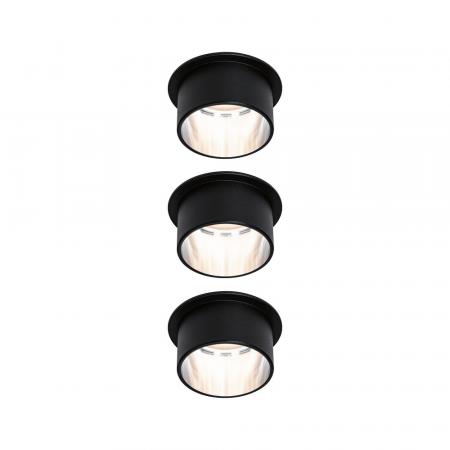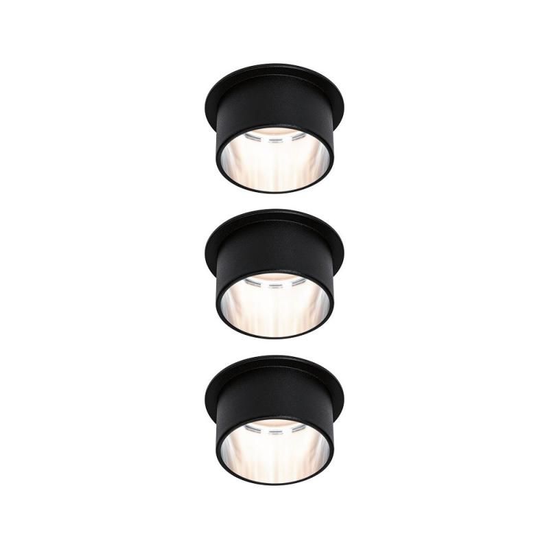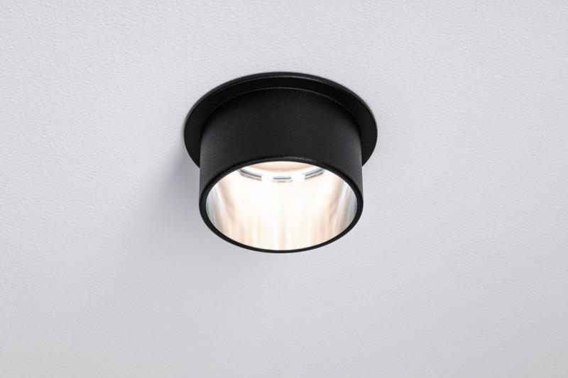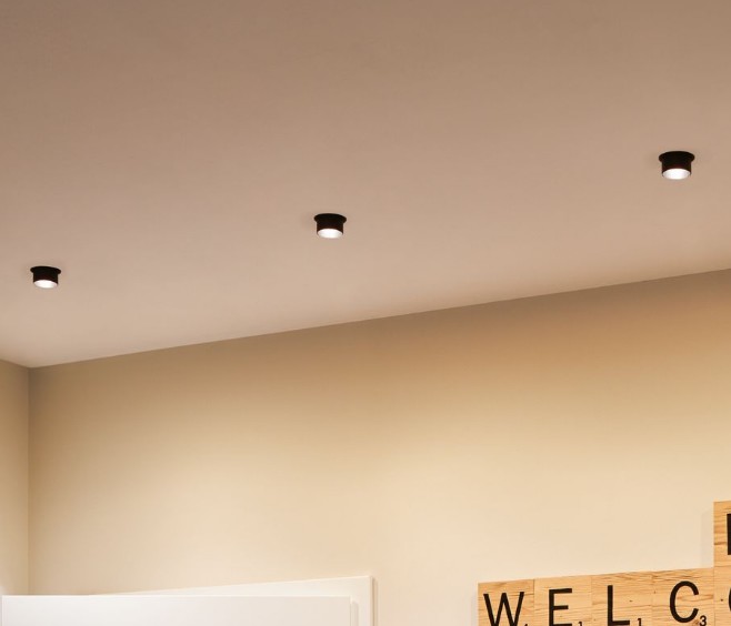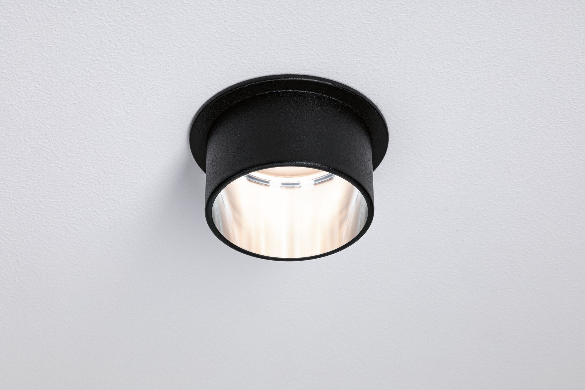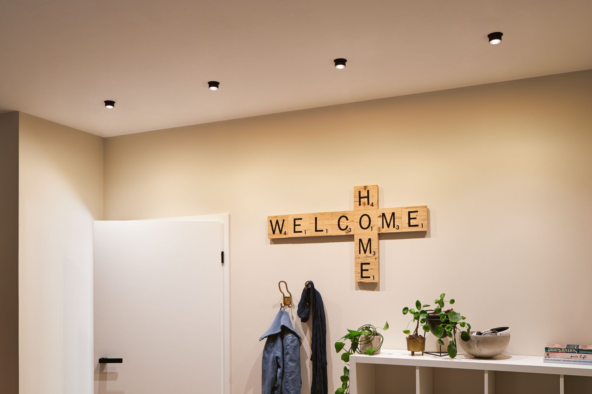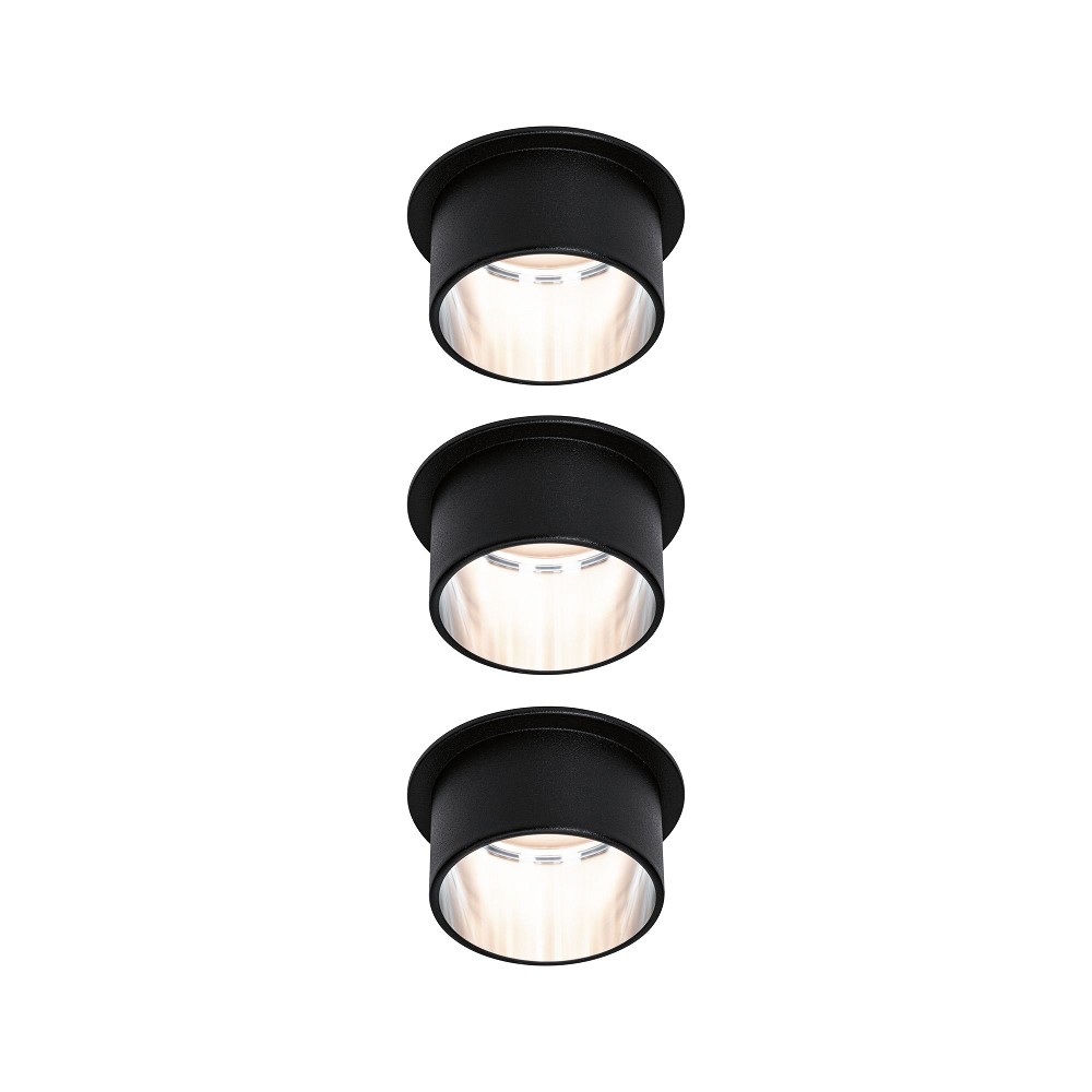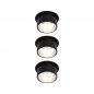 Die dekorativen Einbauleuchten Gil im 3er-Set in der Farbe Schwarz matt#Eisen gebürstet sorgen mit ihrem zweifarbigem Design für Lichthighlights und setzen blendfreie Akzente an der Decke. Durch den hervorstehenden Dekozylinder wird eine geringere Einbautiefe im Vergleich zu den zurückgesetzten Lichtpunkten benötigt. Hat man sie entdeckt, möchte man gar nicht mehr wegschauen. Die Strahler punkten mit brillanter Technik: Die wechselbaren LED Coins liefern angenehm warmweißes Licht, lassen sich mit einem herkömmlichen Lichtschalter in drei Stufen dimmen und sind untereinander unendlich verkettbar. Sie benötigen einen Bohrdurchmesser von 62 mm.