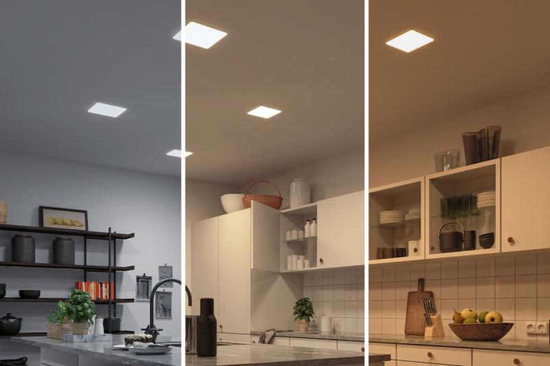 Flexibel einsetzbar wie noch nie! Das Einbaupanel Veluna VariFit in den Maßen 185x185mm besticht durch eine absolut randlose und homogene Lichtfläche. Mit einer superschlanken Aufbauhöhe von nur 10 mm verschmelzt das Panel quasi mit der Decke oder der Wand. Durch den Spritzwasserschutz ist es für den Einsatz im Badezimmer oder Feuchtraum geeignet. Die satinierte Oberfläche der Diffusorplatte sorgt für angenehm flächiges Raumlicht. Die Klemmfedern für den Einbau sind stufenlos auf jede übliche Einbaulochgröße zwischen 60 und 160 mm einstellbar, das erleichtert den Austausch alten Systeme enorm. Mit der Tunable White Weißlichtsteuerung lässt sich die Lichtfarbe der Leuchte individuell und stufenlos einstellen - von tageslichtweißem Arbeitslicht bis hin zu warmweißer Entspannungsbeleuchtung ist alles möglich. Die Leuchte ist Zigbee 3.0 kompatibel. Zigbee ist ein Funkübertragungsprotokoll, das Geräte verschiedener Hersteller miteinander vernetzt.