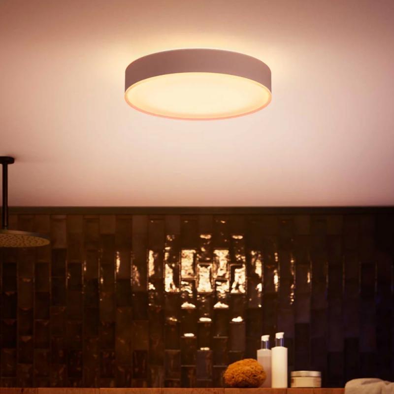 Mit der mittelgroßen Hue Devere Deckenleuchte in Weiß erhältst Du im Badezimmer ein kraftvolles, warm- bis kaltweißes Licht. Nutze morgens helles Licht, um Make-up aufzutragen oder Dich für die Arbeit fertigzumachen. Oder dimme das Licht für ein entspannendes Bad.