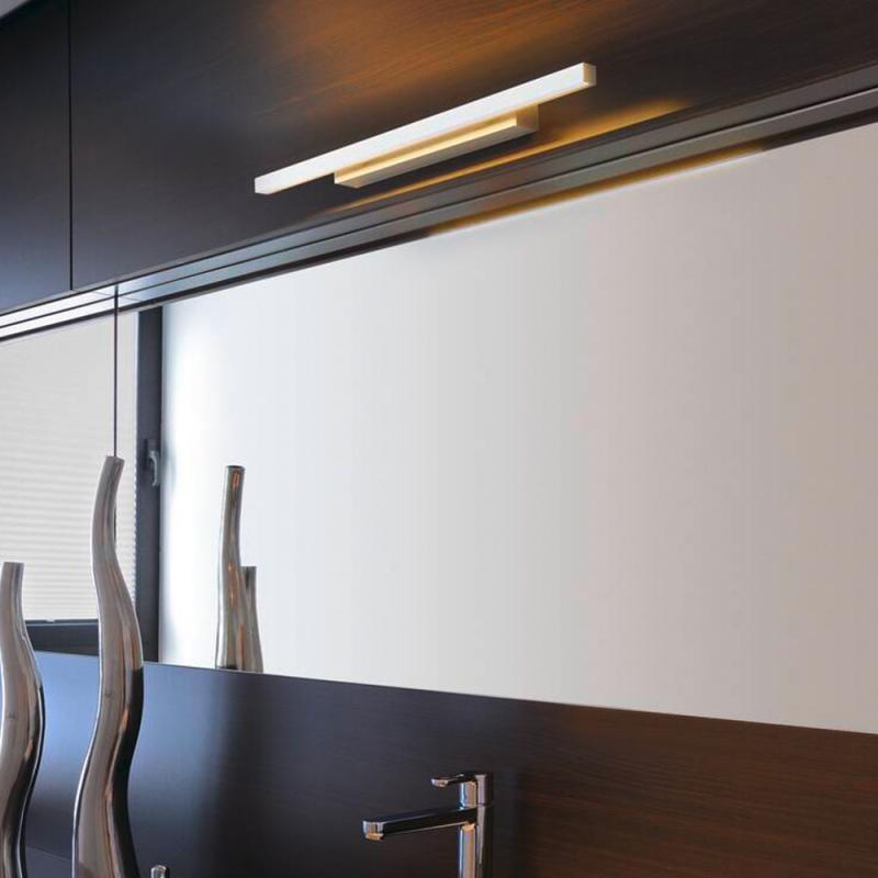Die mit einem Hochleistungs LED Strip ausgestatte Spiegelleuchte GLENOS überzeugt durch ihre elegante und schmale Erscheinung. Die L-förmige Befestigung des Profils, der in schwarz, weiß und silbergrau erhältlichen Spiegelleuchte, sorgt für eine blendfreie Ausleuchtung des Spiegels.