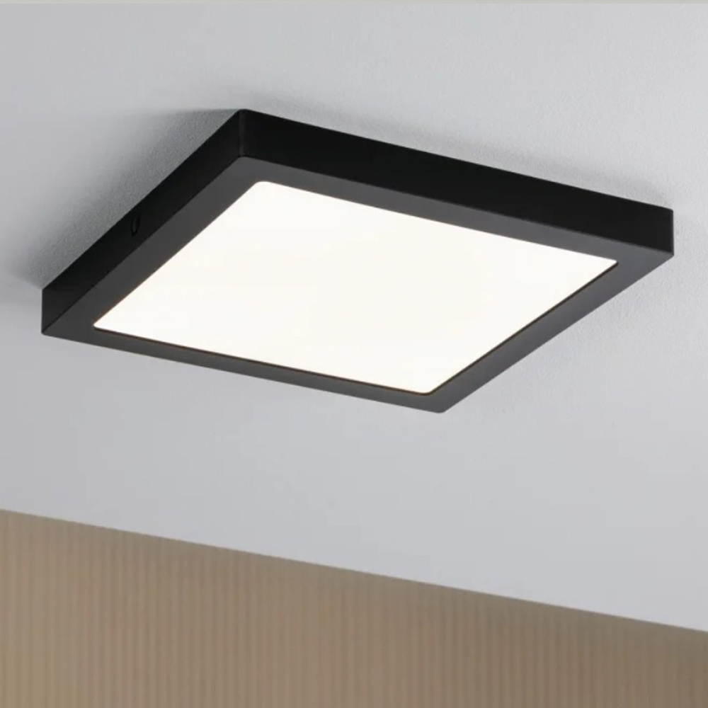 Moderne LED-Technik ermöglicht bei dem eckigen Abia Panel in Schwarz matt eine Kombination von sehr flachem Aufbau und hervorragend gleichmäßiger Lichtverteilung. Die unaufdringliche Gestaltung und klare Linienführung harmonieren mit wohnlich-modernen Stilen sowie architekturbetontem Ambiente.